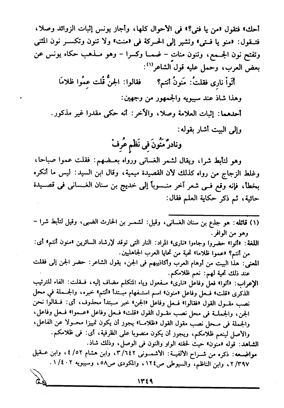 أَتَوْا نارِي فقلت: مَنونُ أنتم؟ ... فقالوا: الجن قُلت عِمُوا ظلاما