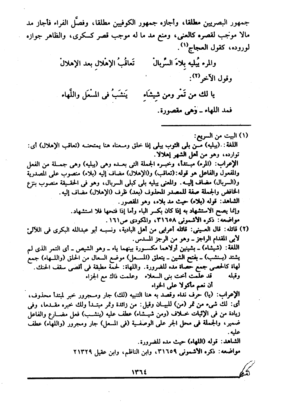 الشاهد: قوله: "اللهاء" حيث مده للضرورة.