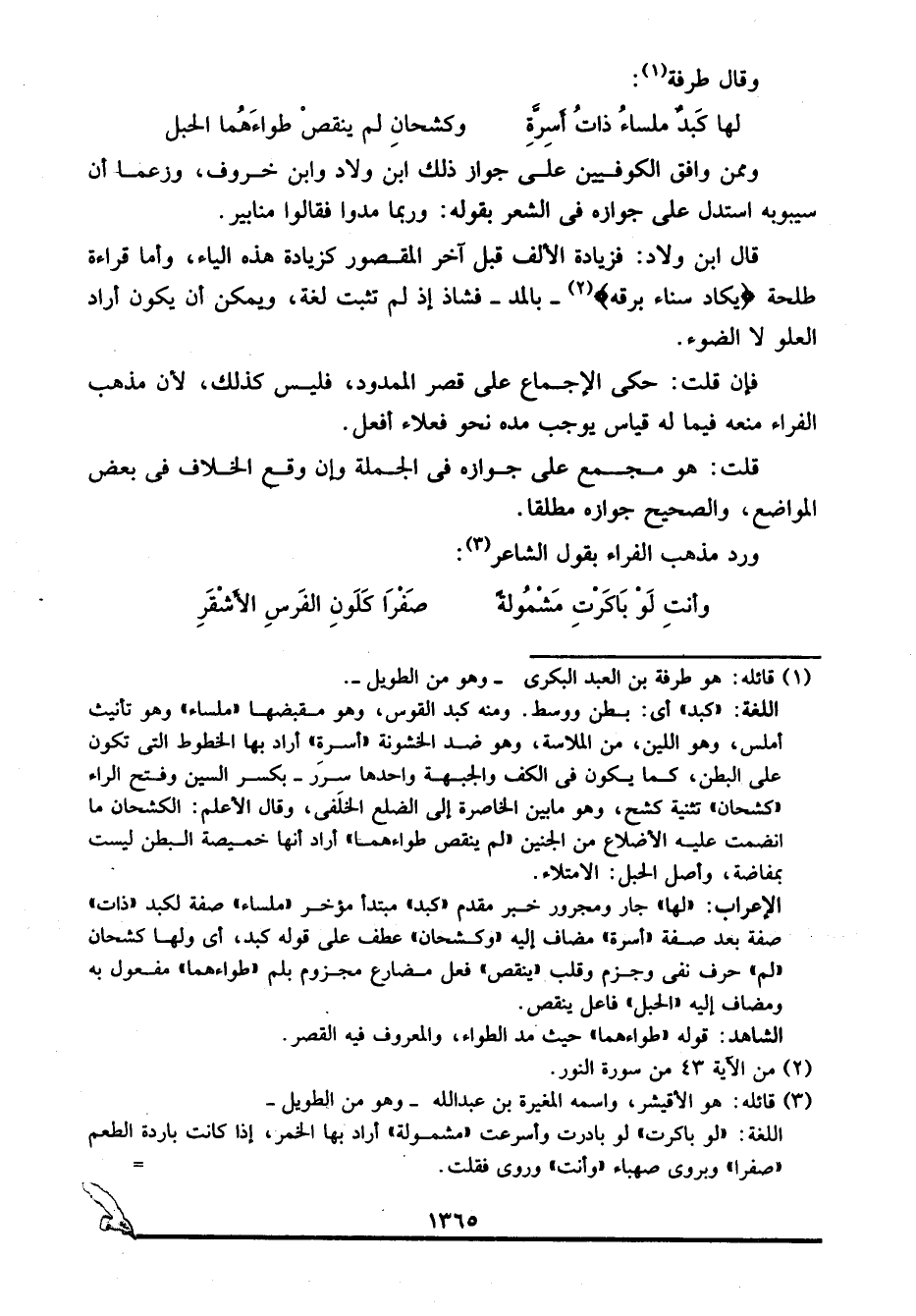 الشاهد: قوله: "طواءهما" حيث مد الطواء، والمعروف فيه القصر.