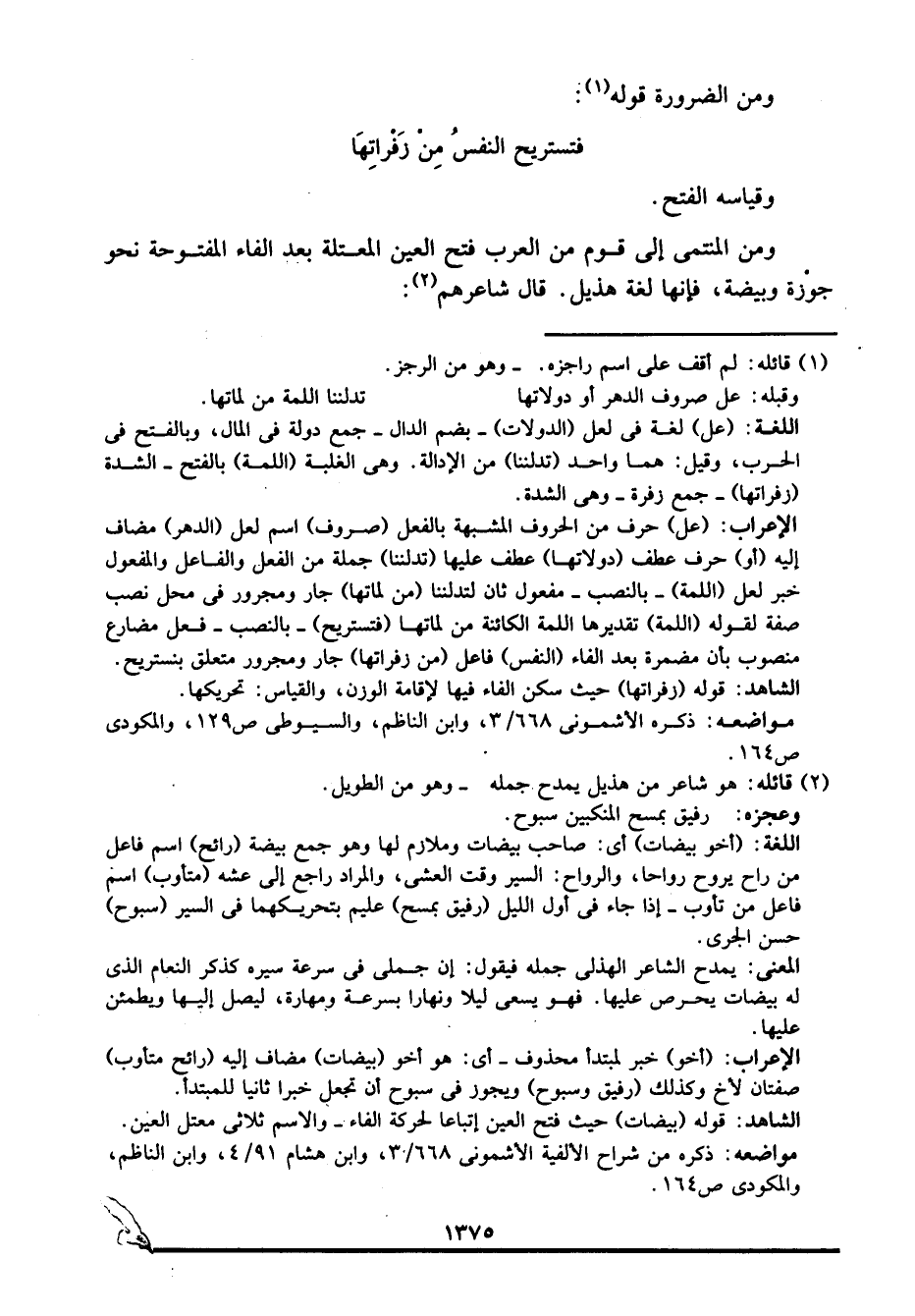 ومن المنتمي إلى قوم من العرب فتح العين المعتلة بعد الفاء المفتوحة نحو: جوْزة وبيضة، فإنها لغة هذيل. قال شاعرهم2: