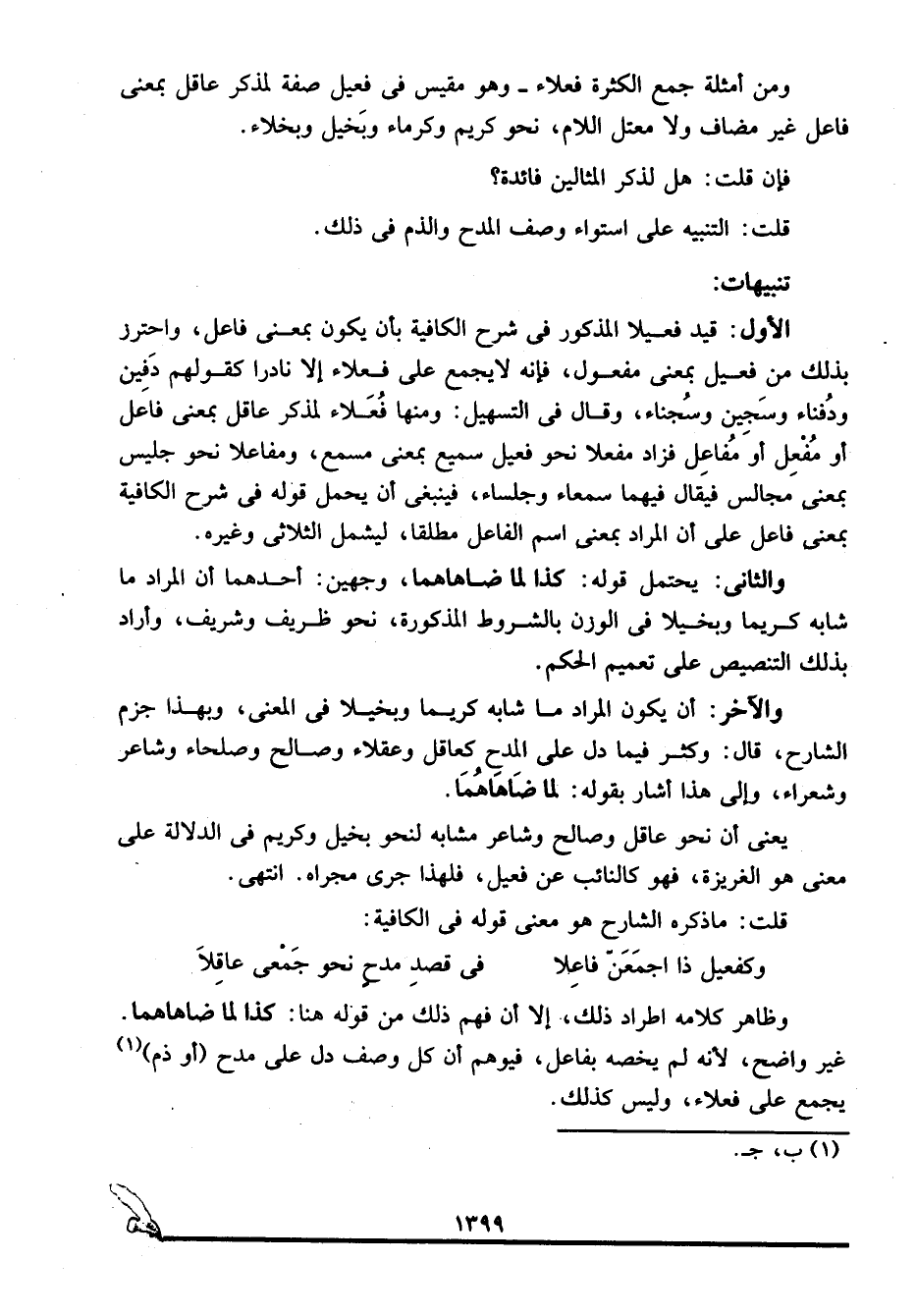 والآخر: أن يكون المراد ما شابه كريما وبخيلا في المعنى، وبهذا جزم الشارح، قال: وكثر فيما دل على المدح كعاقل وعقلاء وصالح وصلحاء وشاعر وشعراء، وإلا هذا أشار بقوله: لما ضاهاهما.