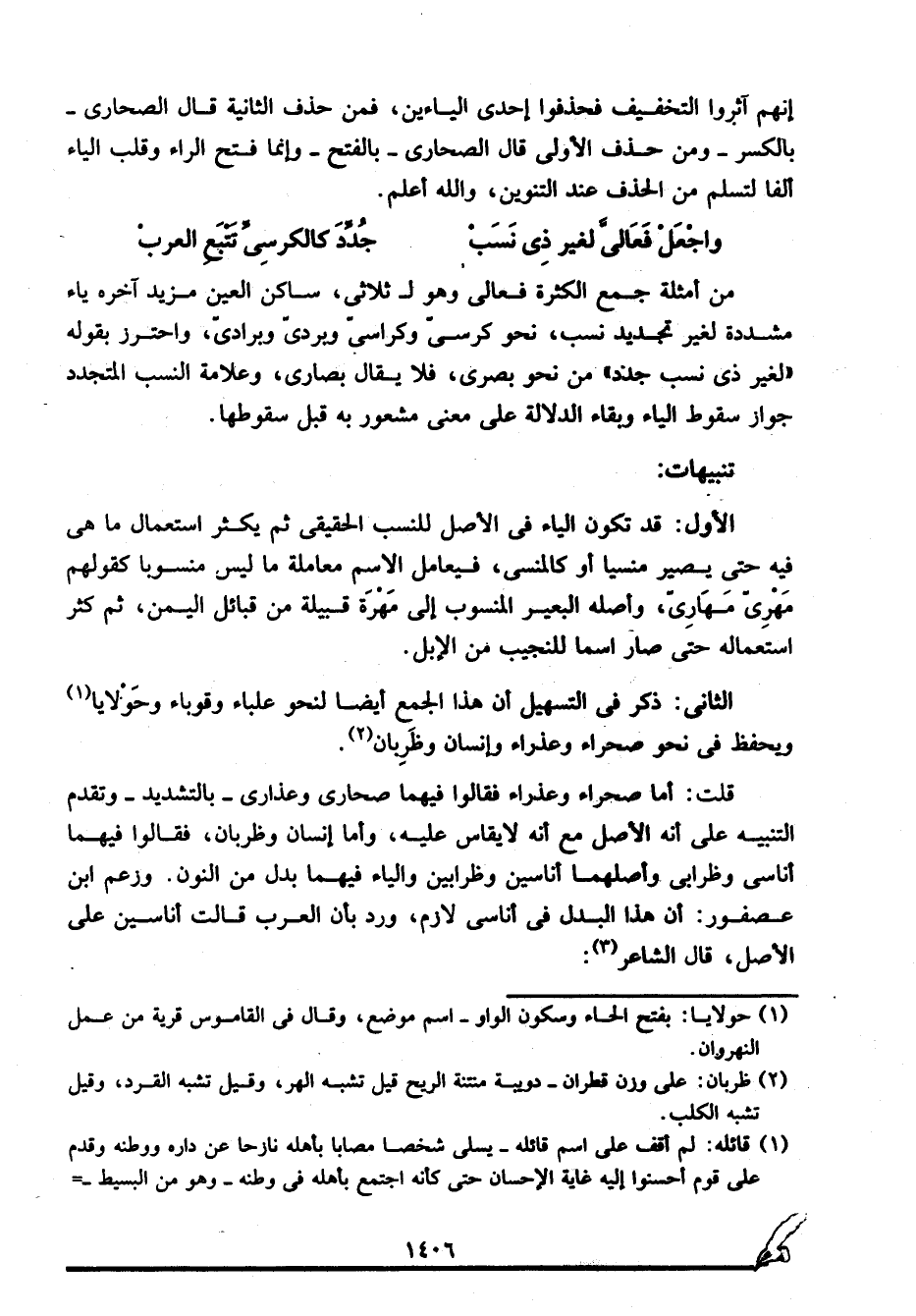 واجعَلْ فَعَاليّ لغير ذي نَسَبْ ... جُدِّدَ كالكرسي تَتْبَعِ العربْ