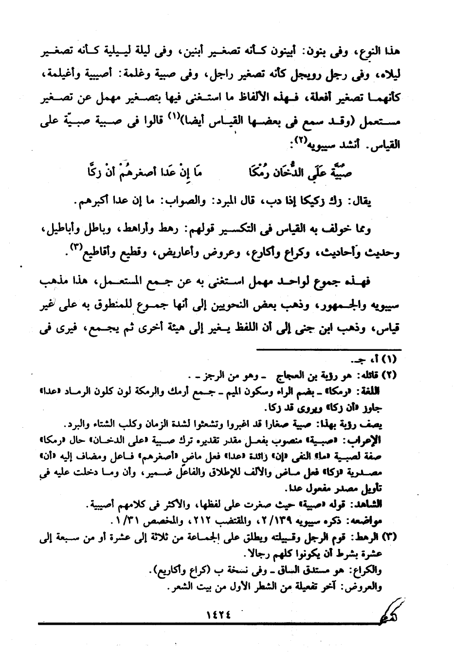 اللغة: "رمكا" -بضم الراء وسكون الميم- جمع أرمك والرمكة لون كلون الرماد "عدا" جاوز "أن زكا" ويروى: قد زكا. يصف رؤبة بهذا: صبية صغارا قد اغبروا وتشعثوا لشدة الزمان وكلب الشتاء والبرد.
