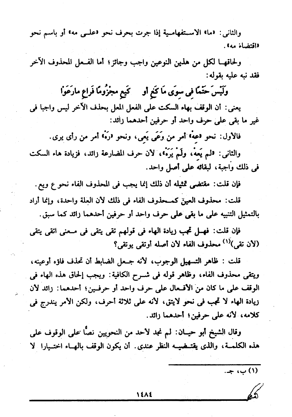 وقال الشيخ أبو حيان: لم نجد لأحد من النحويين نصا على الوقوف على هذه الكلمة، والذي يقتضيه النظر عندي أن يكون الوقف بالهاء اختيارا لا