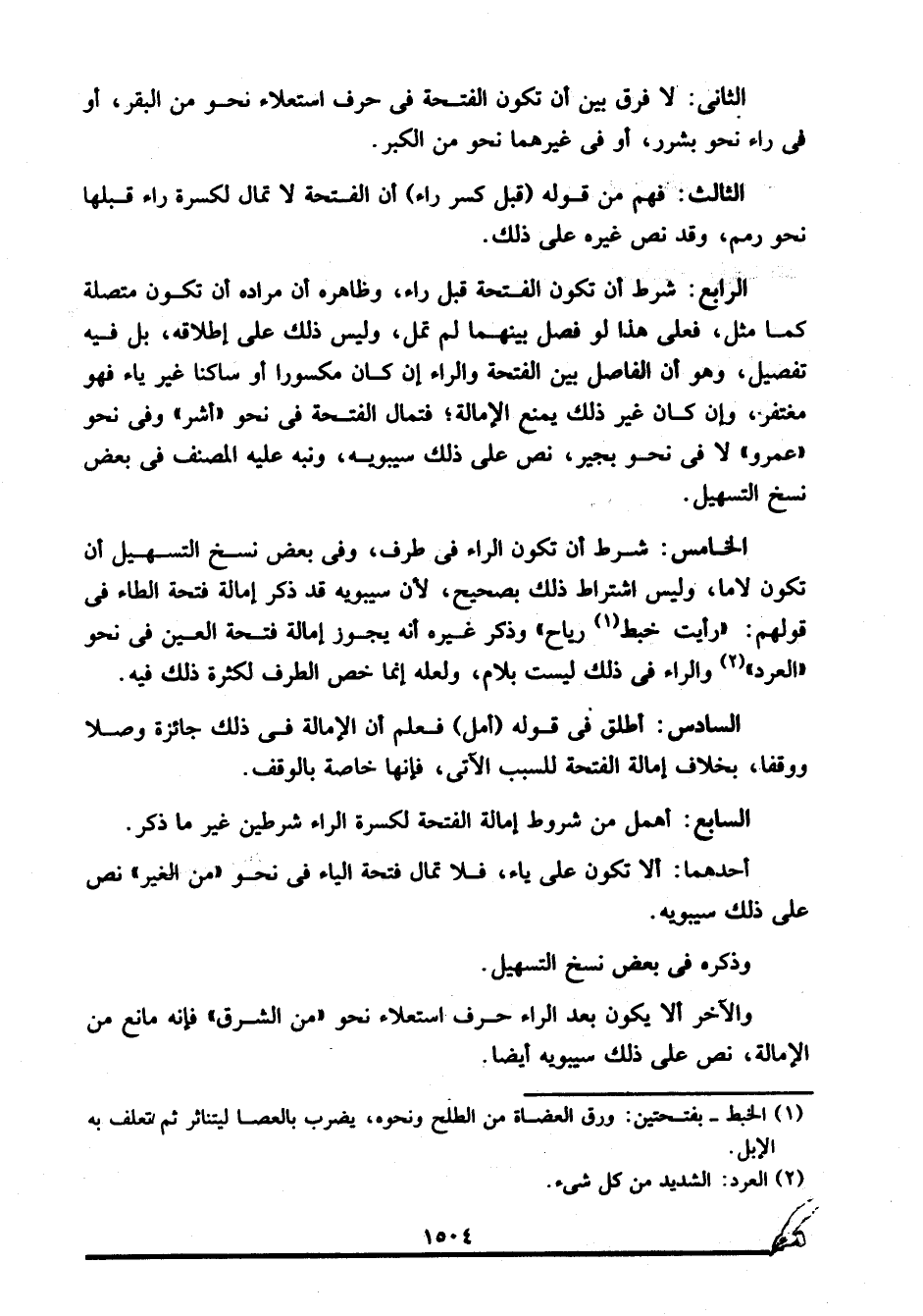 والآخر: ألا يكون بعد الراء حرف استعلاء نحو "من الشرق" فإنه مانع من الإمالة، نص على ذلك سيبويه أيضا.