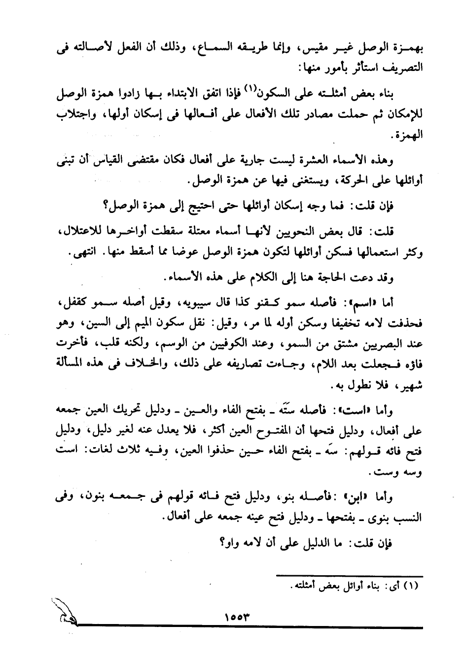 وهذه الأسماء العشرة ليست جارية على أفعال، فكان مقتضى القياس أن تُبنَى أوائلها على الحركة، ويستغنى فيها عن همزة الوصل.