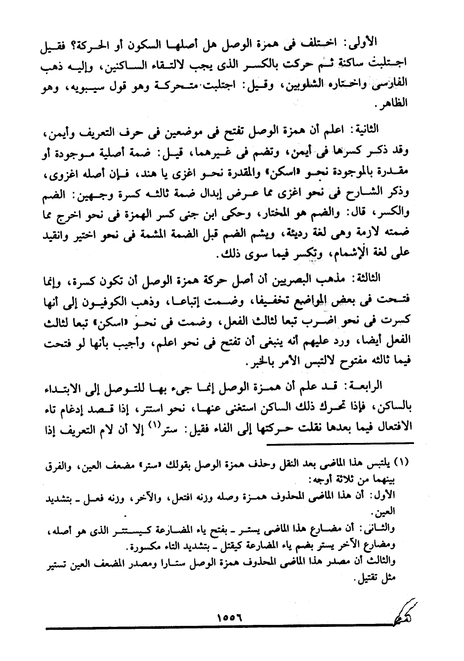 الثالثة: مذهب البصريين أن أصل حركة همزة الوصل أن تكون كسرة، وإنما فتحت في بعض المواضع تخفيفا، وضمن إتباعا، وذهب الكوفيون إلى أنها كسرت في نحو اضرب تبعا لثالث الفعل، وضمت في نحو "اسكن" تبعا لثالث الفعل أيضا، ورد عليهم أنه ينبغي أن تفتح في نحو اعلم، وأجيب بأنها لو فتحت فيما ثالثه مفتوح لالتبس الأمر بالخبر.