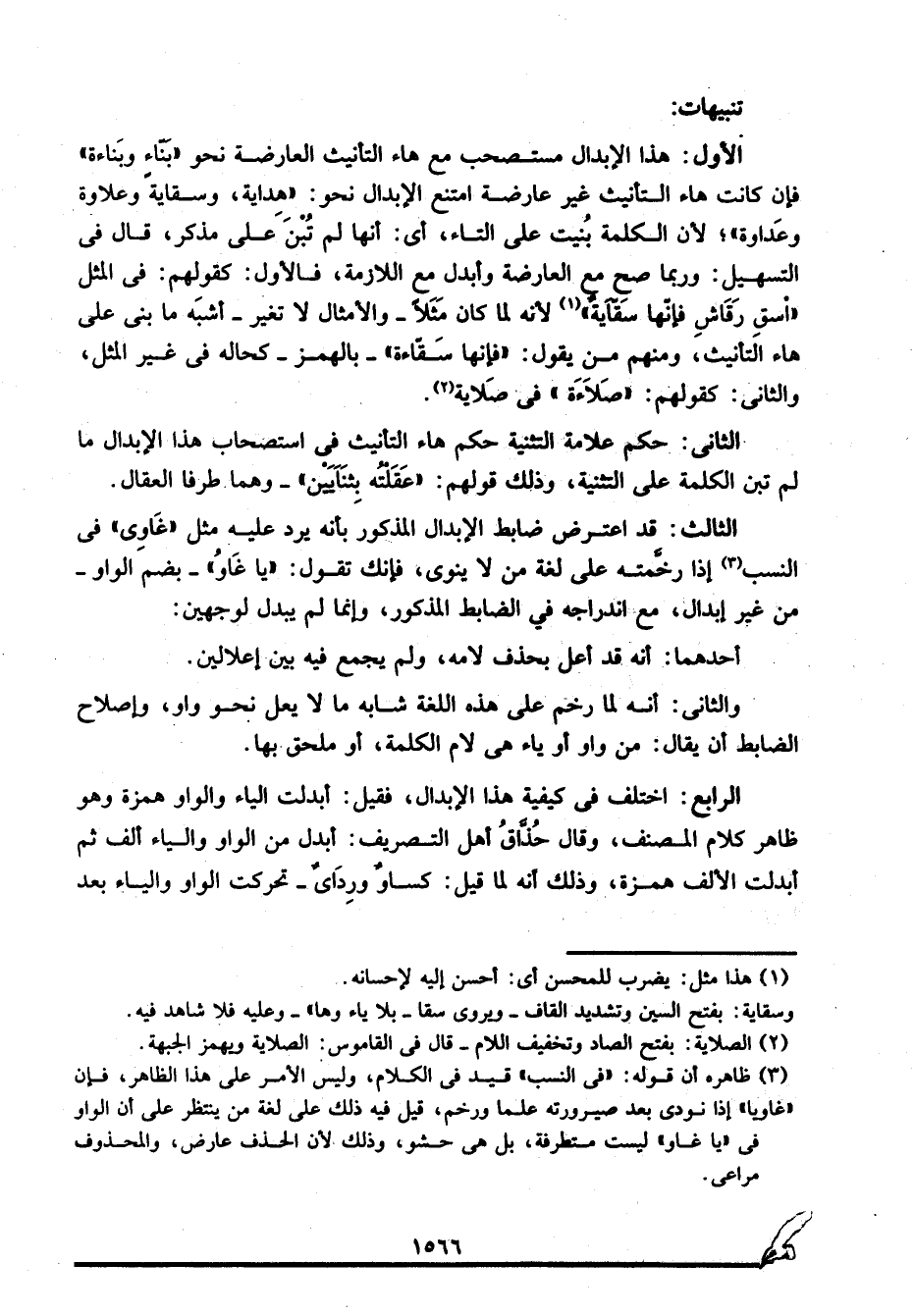 الثالث: قد اعترض ضابط الإبدال المذكور بأنه يرد عليه مثل "غَاوِي" في النسب3 إذا رخمته على لغة من لا ينوي، فإنك تقول: "يا غَاوُ" -بضم الواو- من غير إبدال، مع اندراجه في الضابط المذكور، وإنما لم يبدل لوجهين: