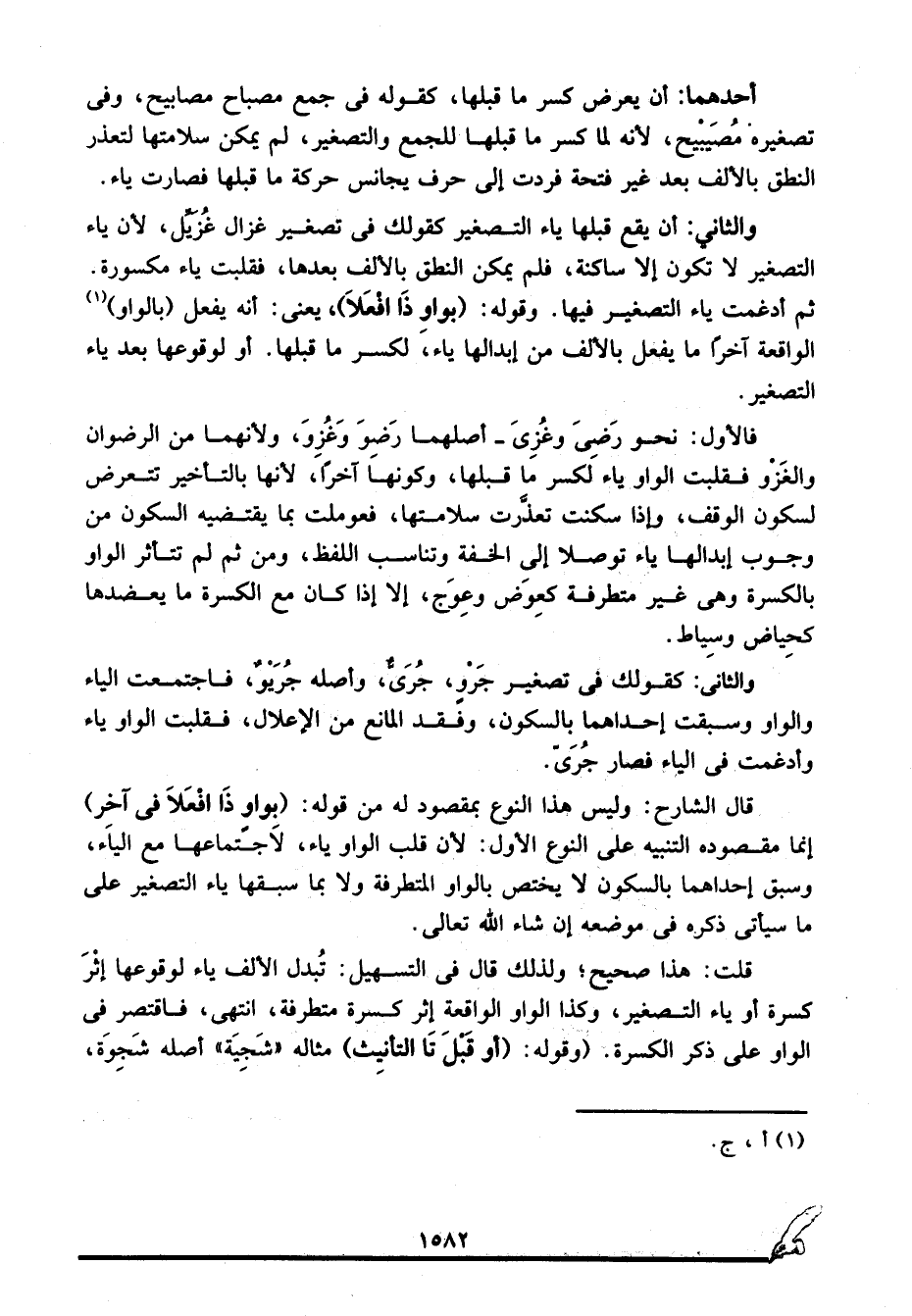 قال الشارح: وليس هذا النوع بمقصود له في قوله: "بواو ذا افعلا في آخر" إنما مقصوده التنبيه على النوع الأول؛ لأن قلب الواو ياء، لاجتماعها مع الياء، وسبق إحداهما بالسكون لا يختص بالواو المتطرفة ولا بما سبقها ياء التصغير على ما سيأتي ذكره في موضعه إن شاء الله تعالى.
