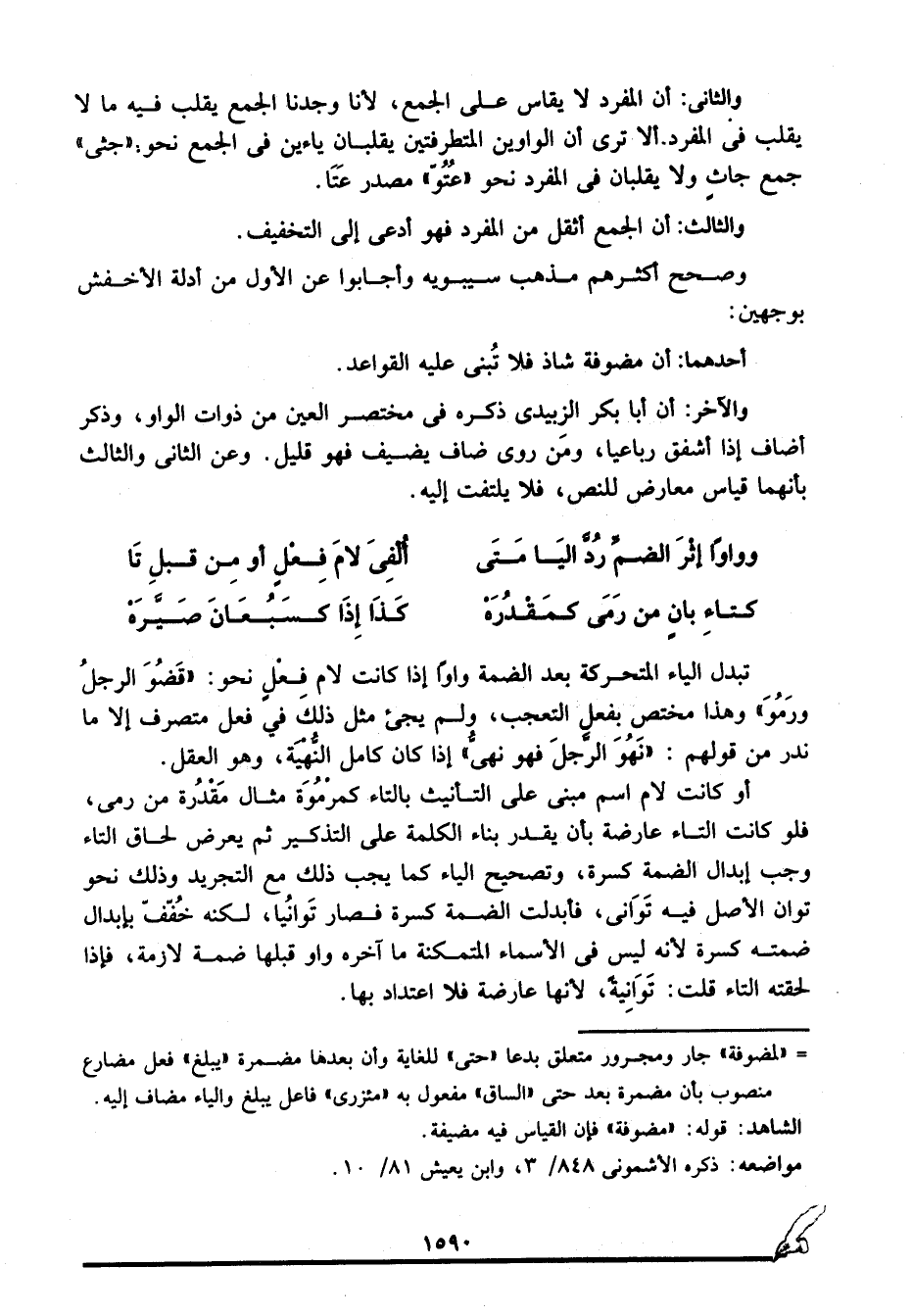 والآخر: أن أبا بكر الزبيدي ذكره في مختصر العين من ذوات الواو، وذكر أضاف إذا أشفق رباعيا، ومن روى ضاف يضيف فهو قليل. وعن الثاني والثالث بأنهما قياس معارض للنص، لا يلتفت إليه.