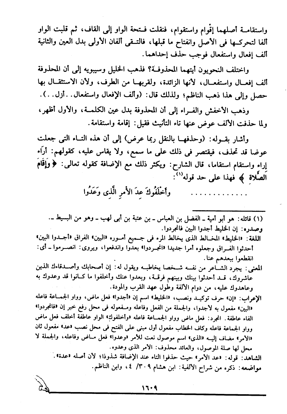 الشاهد: قوله: "عد الأمر" حيث حذفوا التاء عند الإضافة شذوذا؛ لأن أصله "عدة".