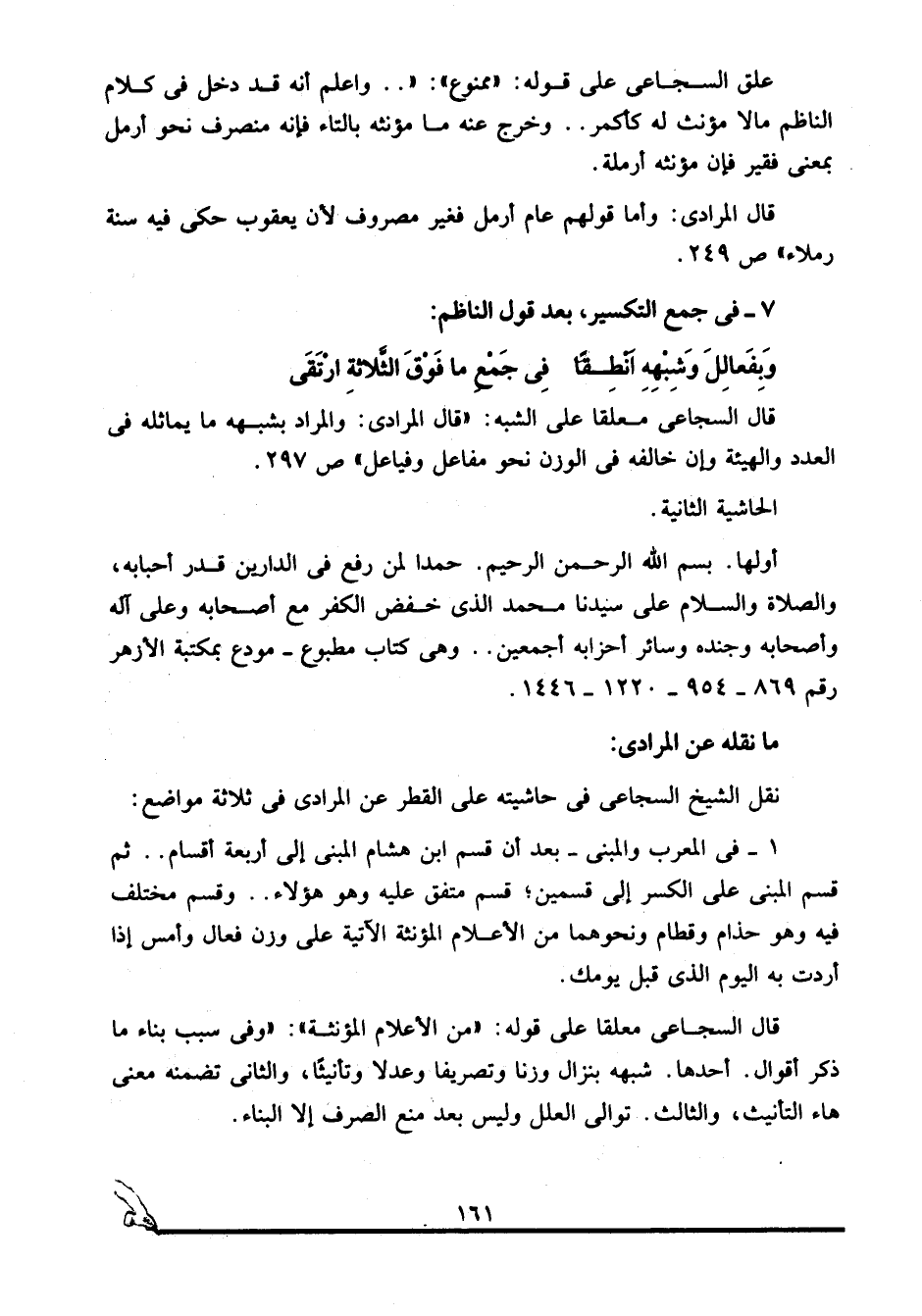 نقل الشيخ السجاعي في حاشيته على القطر عن المرادي في ثلاثة مواضع: