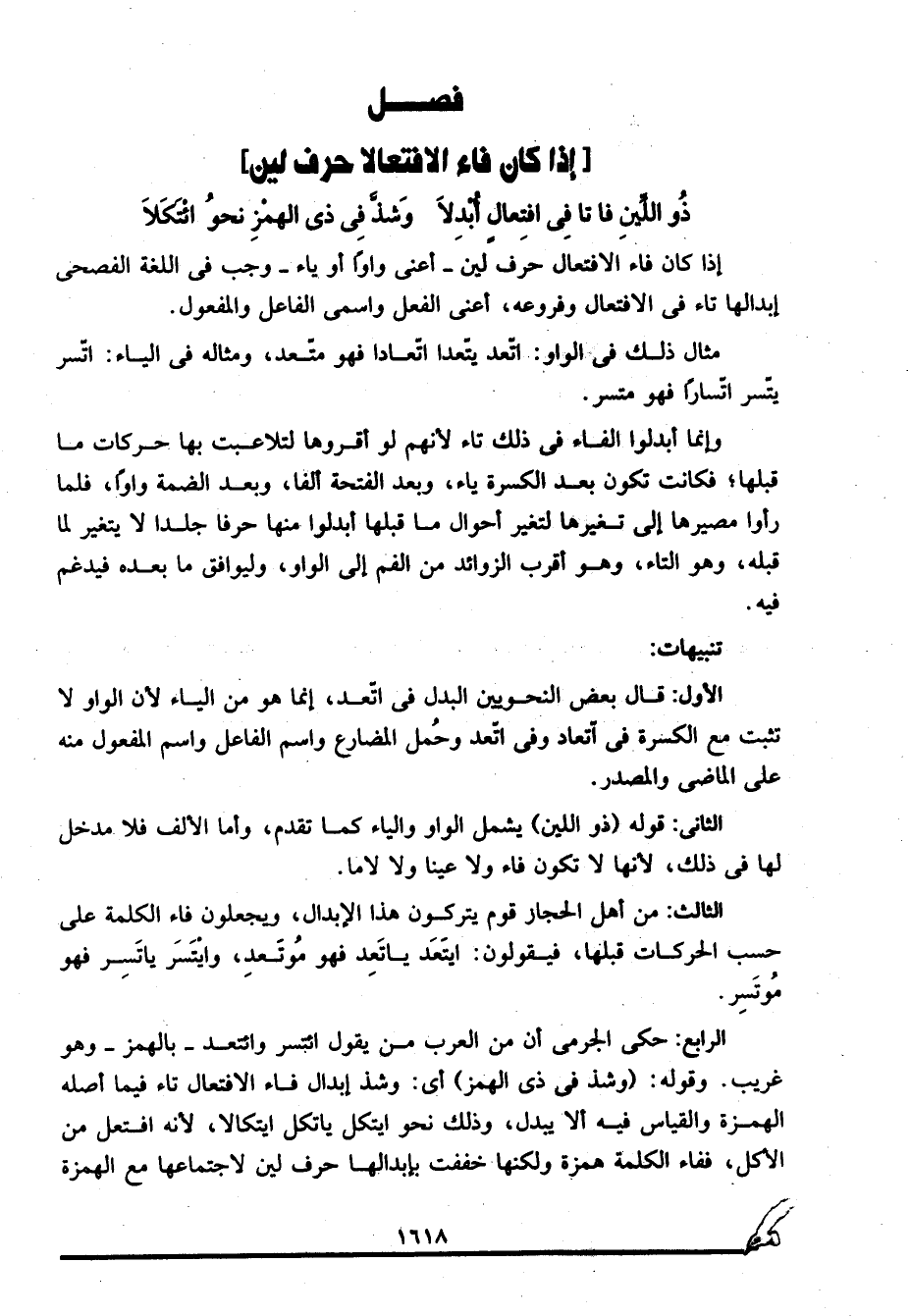 إذا كان فاء الافتعال حرف لين -أعني واوًا أو ياءً- وجب في اللغة الفصحى إبدالها تاء في الافتعال وفروعه، أعني الفعل واسمى الفاعل والمفعول.