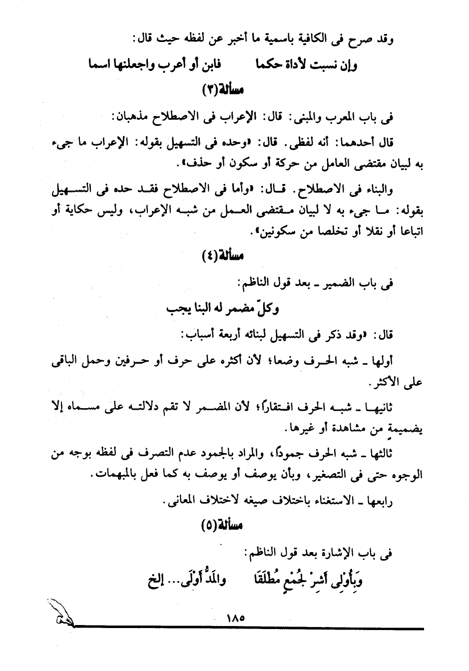 قال: "وقد ذكر في التسهيل لبنائه أربعة أسباب: