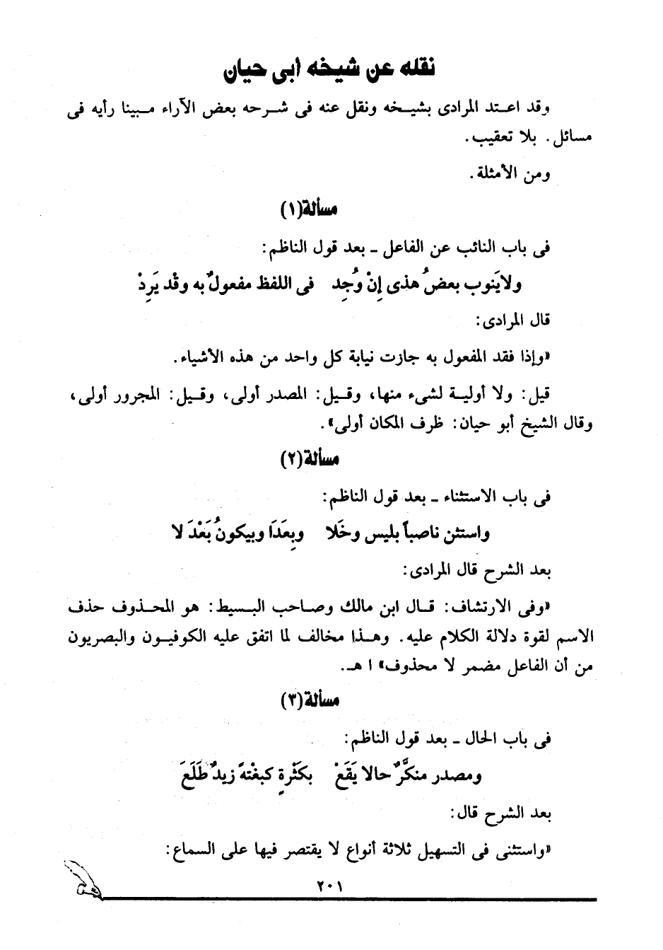 نقله عن شيخه أبي حيان: