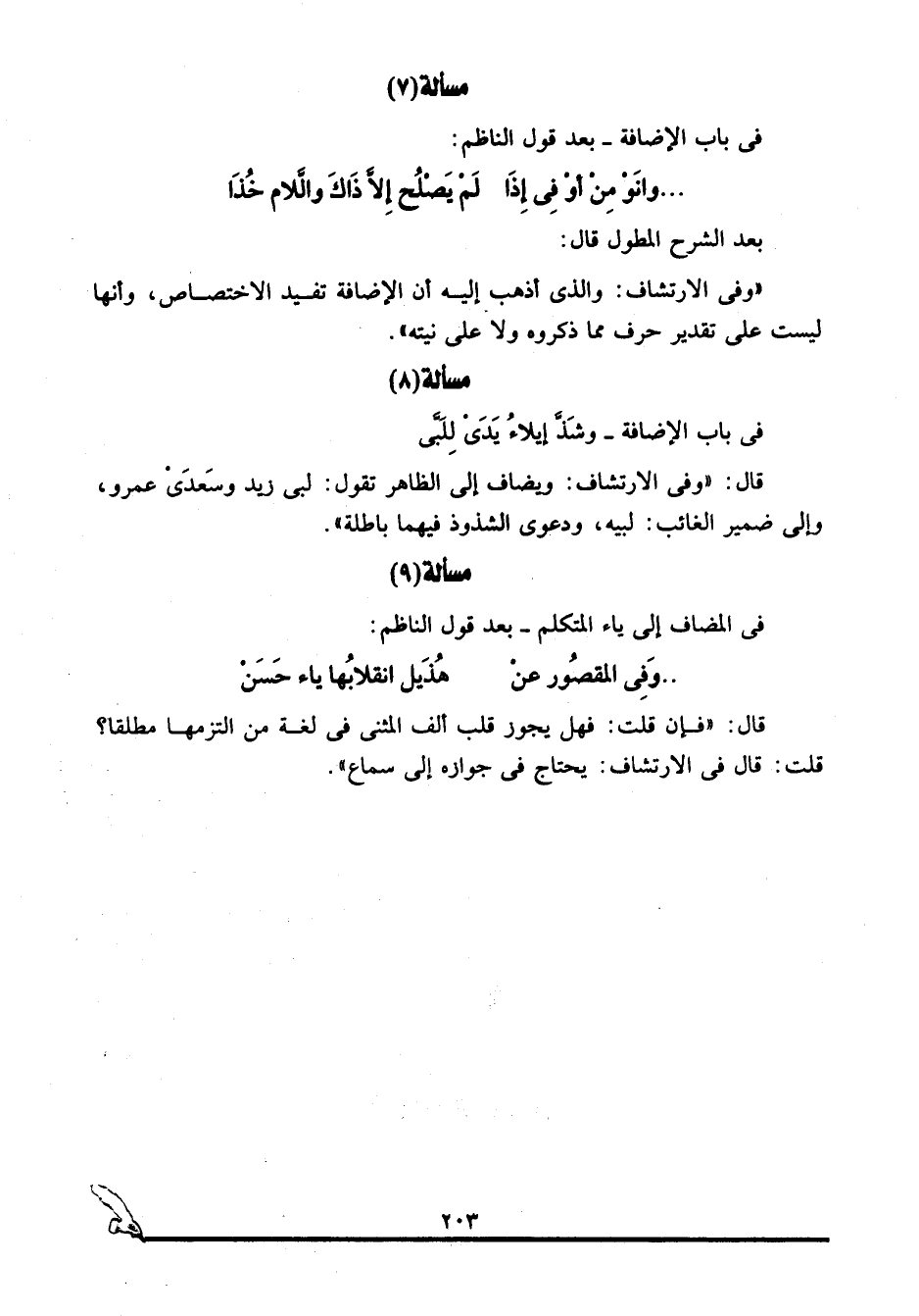 في باب الإضافة, بعد قول الناظم: