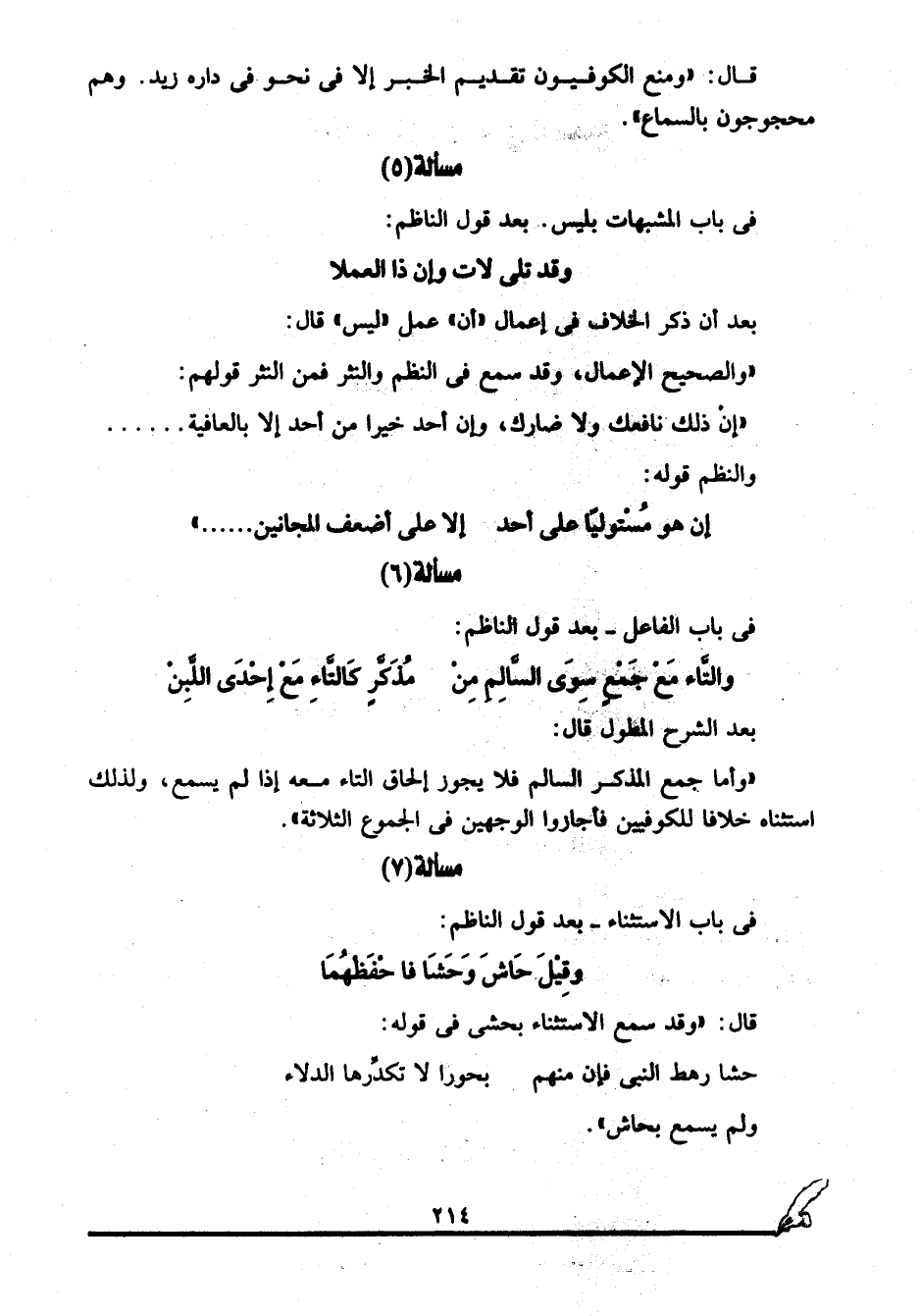 قال: "وقد سمع الاستثناء بحشى في قوله: