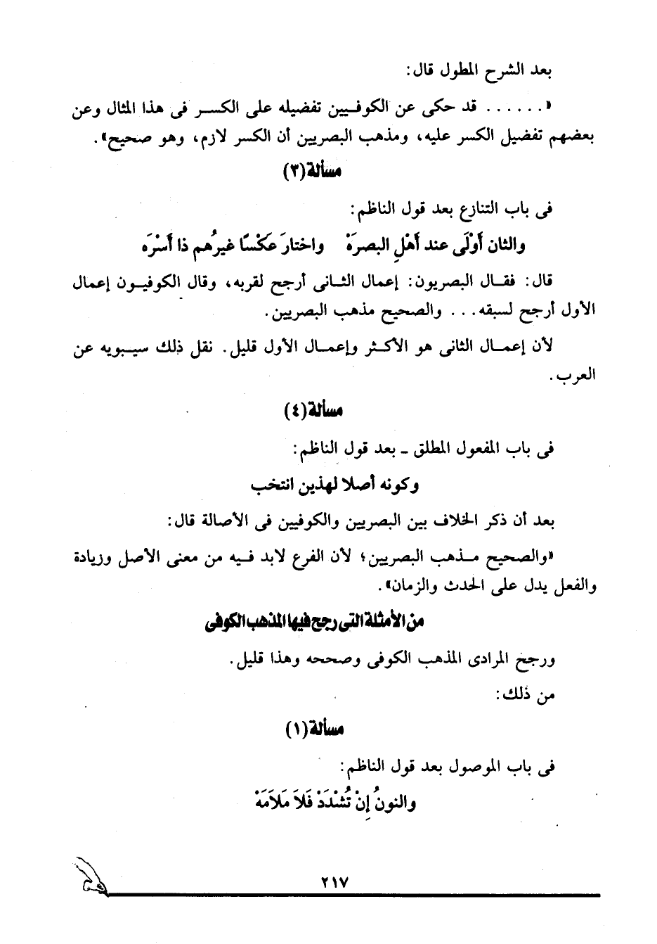 من الأمثلة التي رجح فيها المذهب الكوفي: