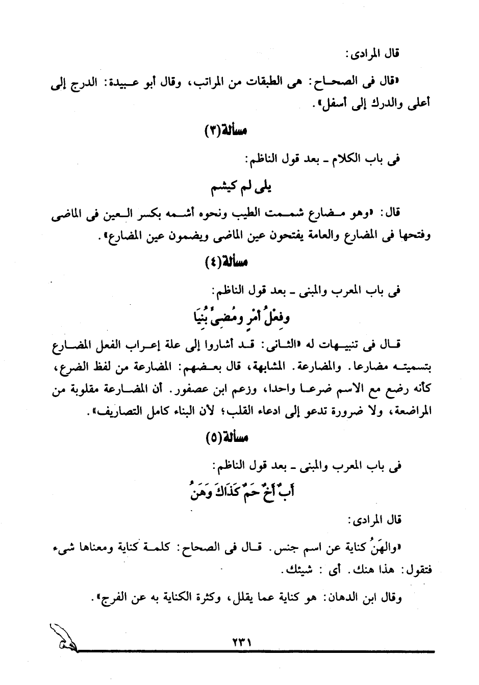 في باب الكلام, بعد قول الناظم: