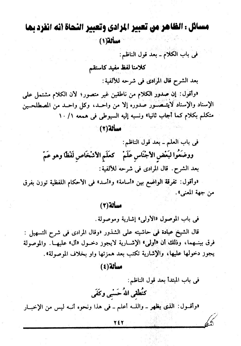 مسائل: الظاهر من تعبير المرادي وتعبير النحاة أنه انفرد بها: