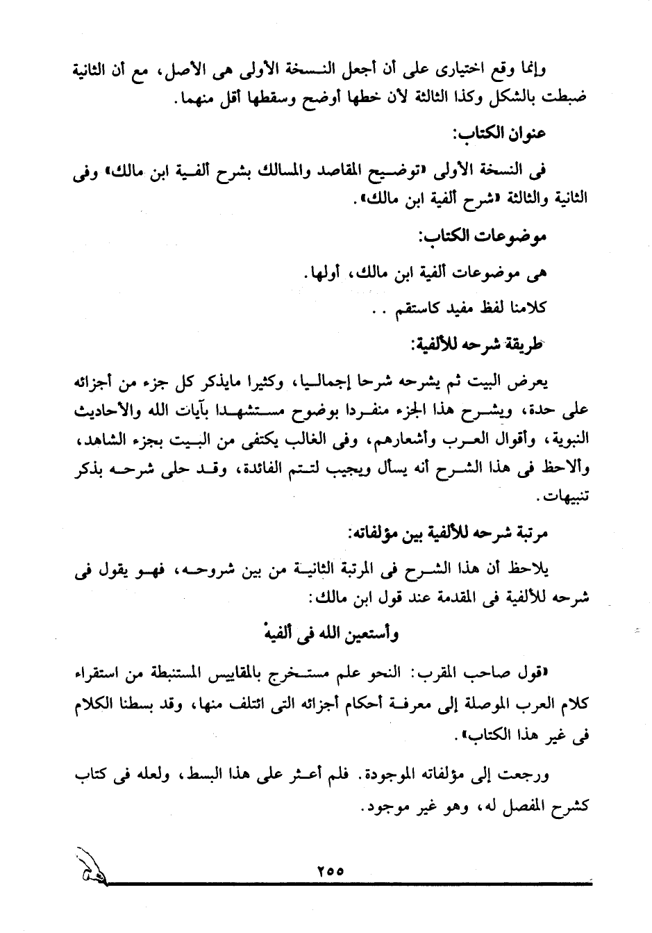 وإنما وقع اختياري على أن أجعل النسخة الأولى هي الأصل، مع أن الثانية ضبطت بالشكل وكذا الثالثة لأن خطها أوضح وسقطها أقل منهما.