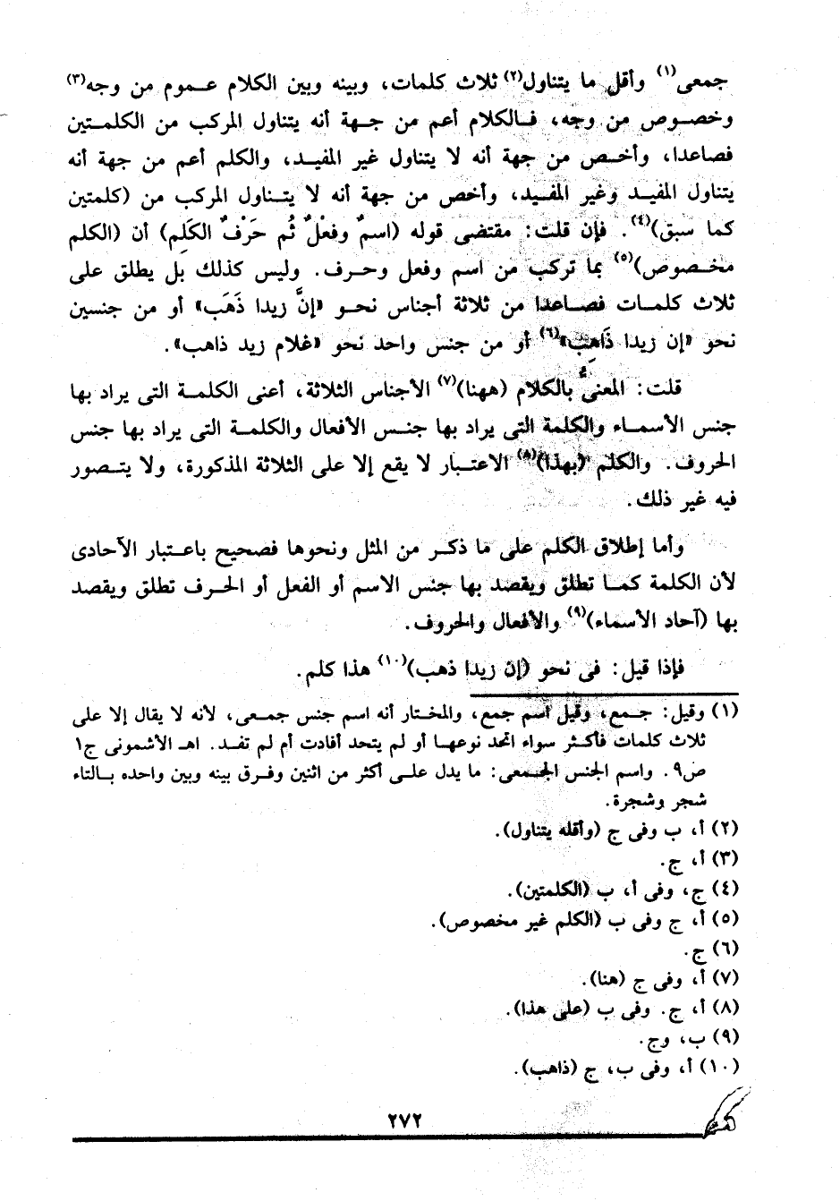 قلت: المعنى بالكلام "ههنا"7 الأجناس الثلاثة، أعني الكلمة التي يراد بها جنس الأسماء والكلمة التي يراد بها جنس الأفعال والكلمة التي يراد بها جنس الحروف. والكلم "بهذا"8 الاعتبار لا يقع إلا على الثلاثة المذكورة، ولا يتصور فيه غير ذلك.