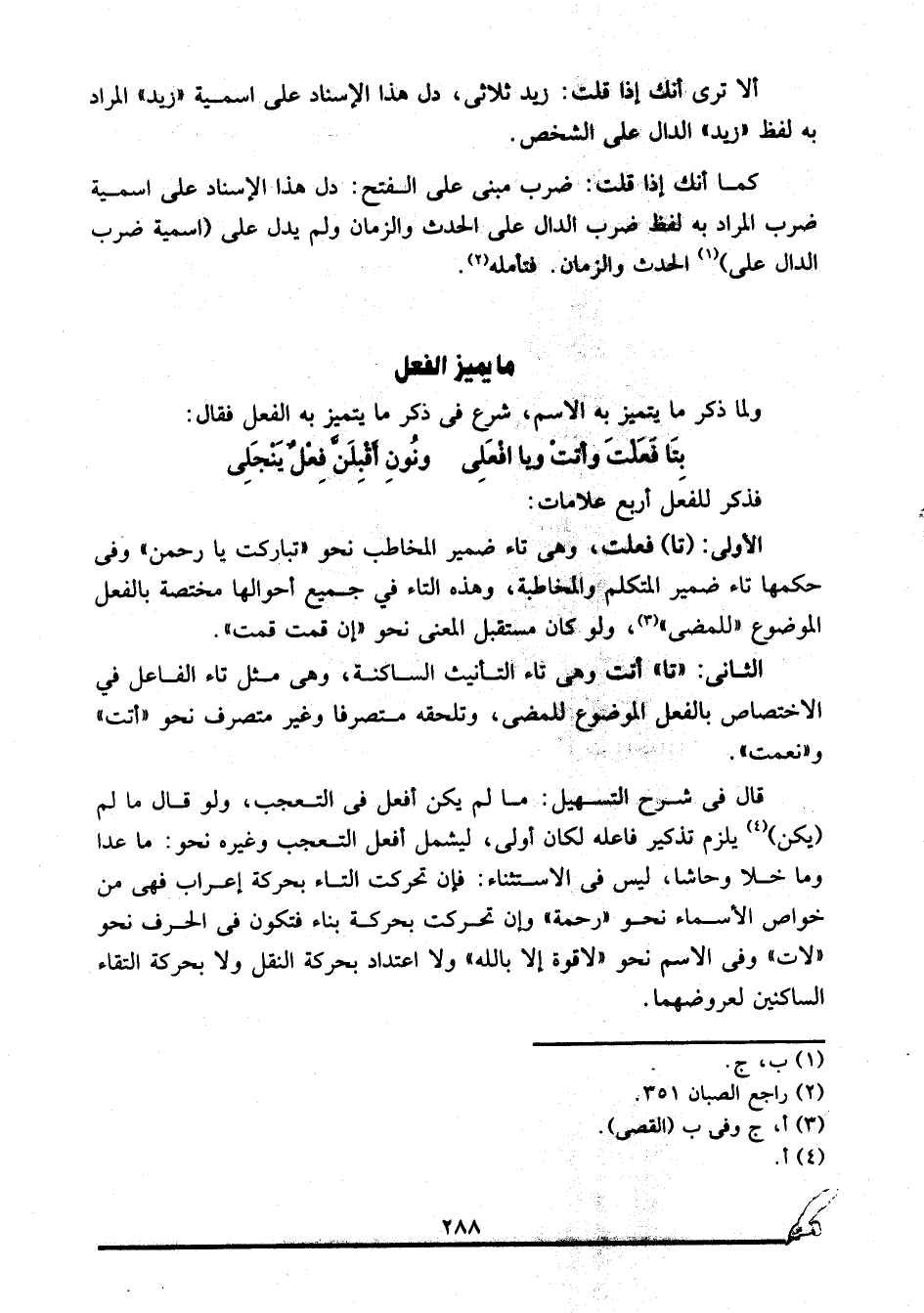 الثاني: "تا" أتت وهي تاء التأنيث الساكنة، وهي مثل تاء الفاعل في الاختصاص بالفعل الموضوع للمضي، وتلحقه متصرفا وغير متصرف نحو "أتت" و"نعمت".