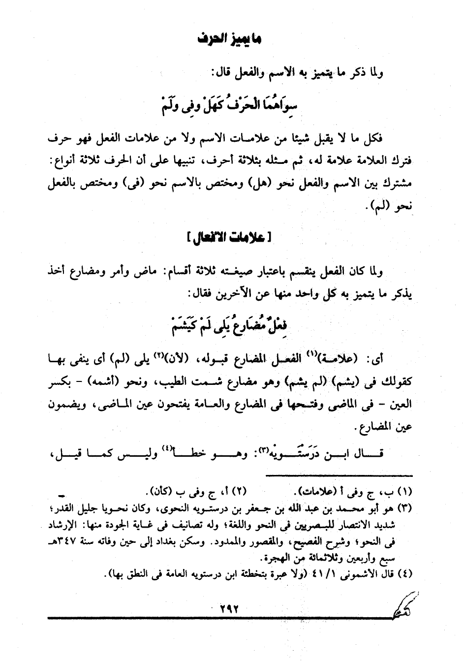 3 هو أبو محمد بن عبد الله بن جعفر بن درستويه النحوي، وكان نحويا جليل القدر، شديد الانتصار للبصريين في النحو واللغة، وله تصانيف في غاية الجودة منها: الإرشاد في النحو، وشرح الفصيح، والمقصور والممدود. وسكن بغداد إلى حين وفاته سنة 347هـ سبع وأربعين وثلاثمائة من الهجرة.