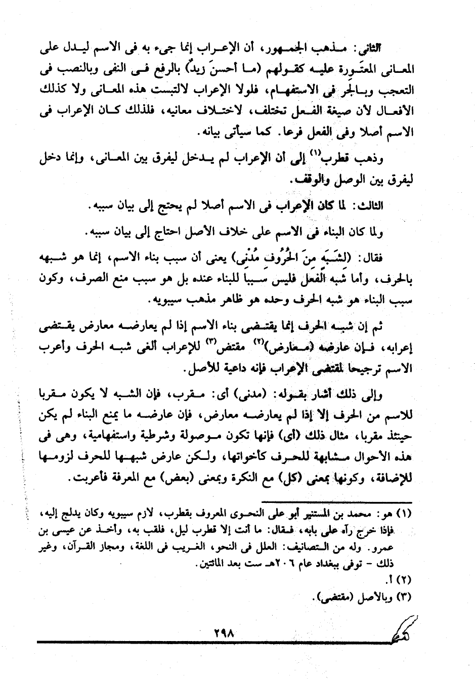 1 هو: محمد بن المستنير أبو عليّ النحوي المعروف بقطرب، لازم سيبويه وكان يدلج إليه، فإذا خرج رآه على بابه، فقال: ما أنت إلا قطرب ليل، فلقب به، وأخذ عن عيسى بن عمرو. وله من التصانيف: العلل في النحو، الغريب في اللغة، ومجاز القرآن، وغير ذلك. توفي ببغداد عام 206هـ ست بعد المائتين.