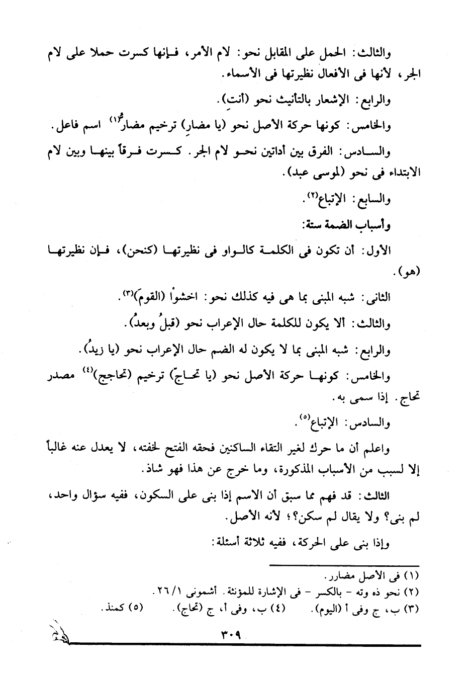 والخامس: كونها حركة الأصل نحو "يا تحاج" ترخيم "تحاجج"4 مصدر تحاج. إذا سمي به.