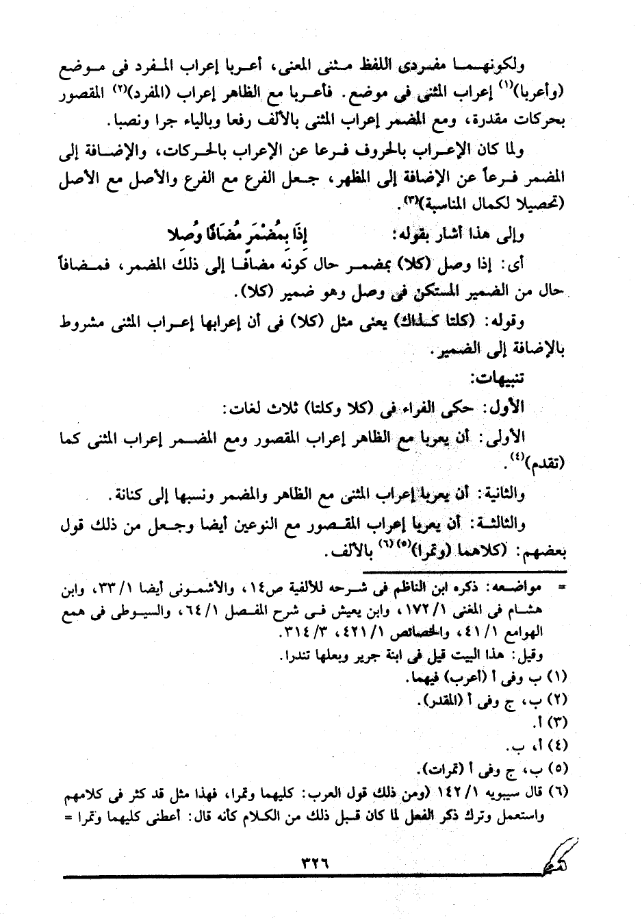 وقوله: "كلتا كذاك" يعني مثل "كلا" في أن إعرابها إعراب المثنى مشروط بالإضافة إلى الضمير.