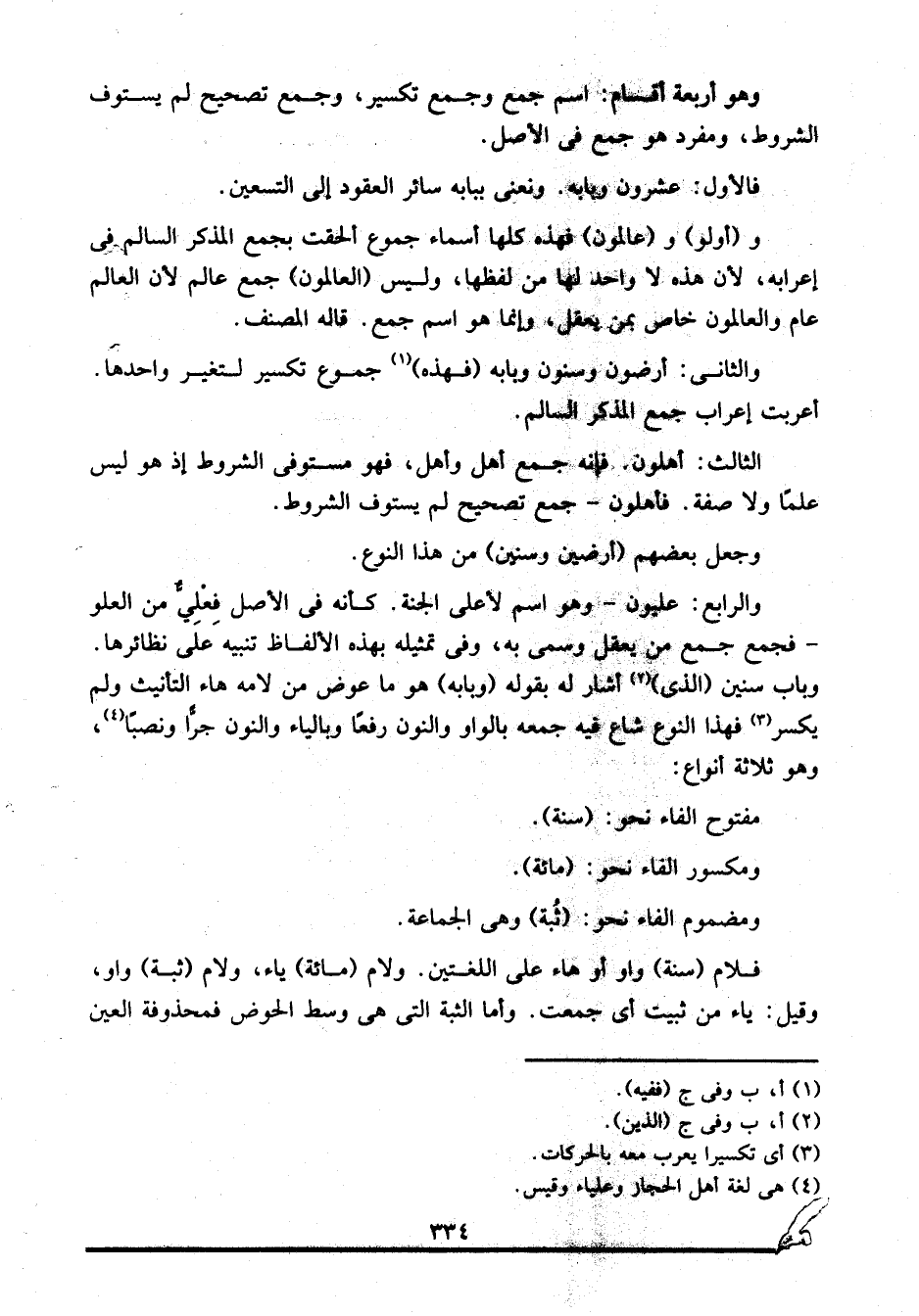 وهو أربعة أقسام: اسم جمع وجمع تكسير، وجمع تصحيح لم يستوف الشروط، ومفرد هو جمع في الأصل.