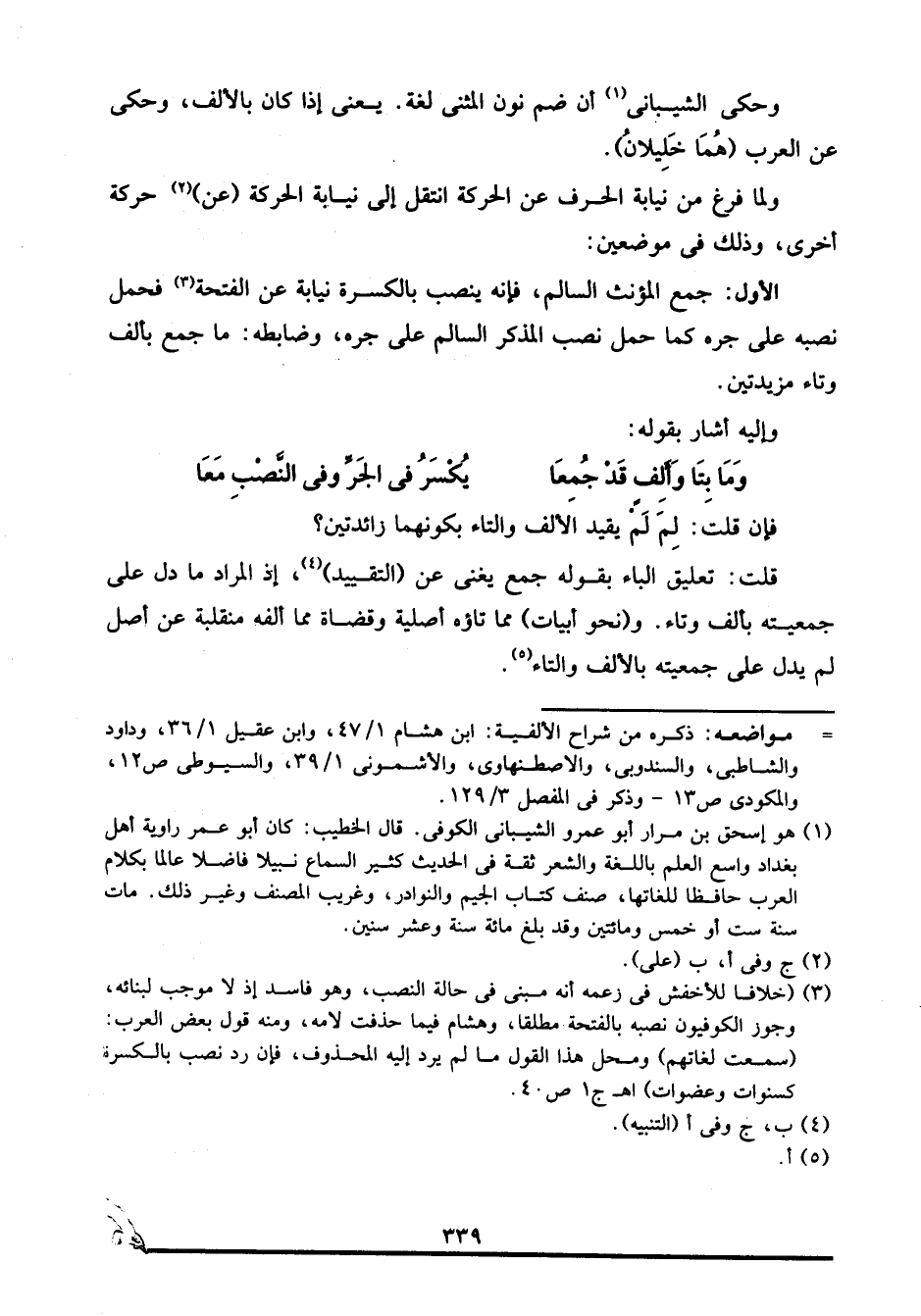3 "خلافا للأخفش في زعمه أنه مبني في حالة النصب، وهو فاسد إذ لا موجب لبنائه، وجوز الكوفيون نصبه بالفتحة مطلقا، وهشام فيما حذفت لامه، ومنه قول بعض العرب: "سمعت لغاتهم" ومحل هذا القول ما لم يرد إليه المحذوف، فإن رد نصب بالكسرة كسنوات وعضوات". ا. هـ. ج1 ص40.