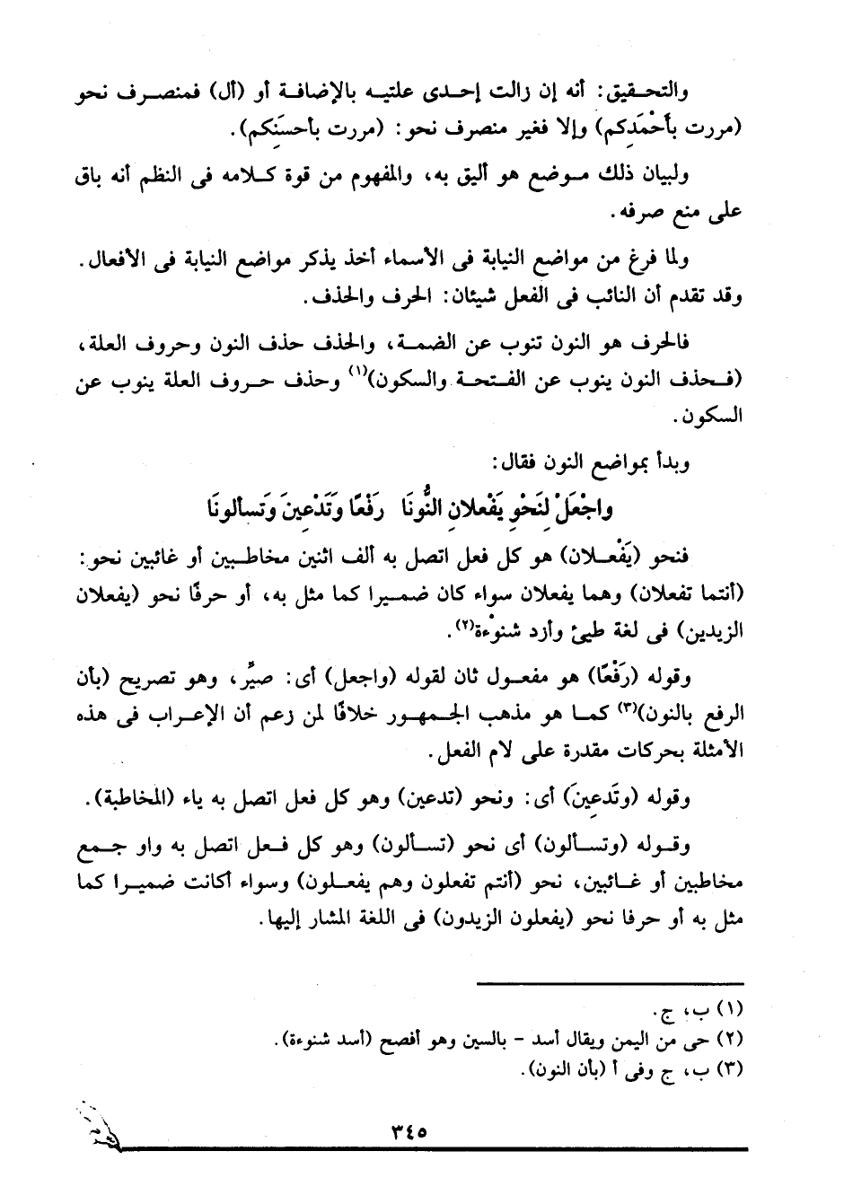 واجعل لنحو يفعلان النونا ... رفعا وتدعين وتسألونا