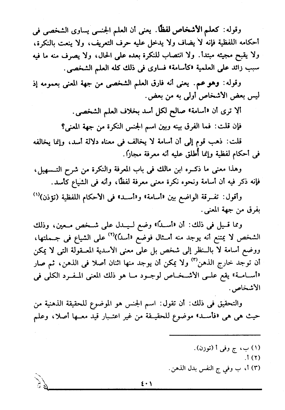 قلت: ذهب قوم إلى أن أسامة لا يخالف في معناه دلالة أسد، وإنما يخالفه في أحكام لفظية وإنما أطلق عليه أنه معرفة مجازا.