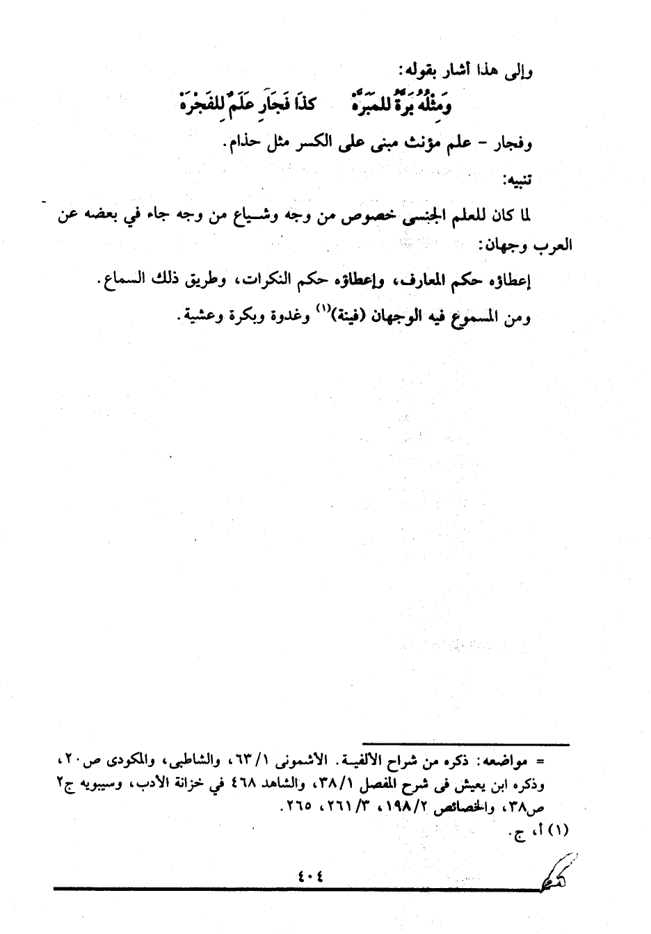 ومثله برة للمبره ... كذا فجار علم للفجره