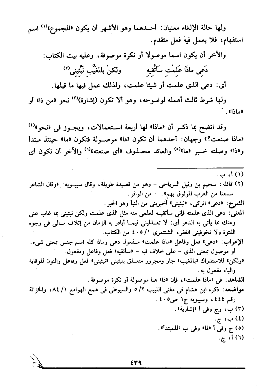 الشاهد: في "ماذا علمت"، فإن "ذا" هنا موصولة أو نكرة موصوفة.