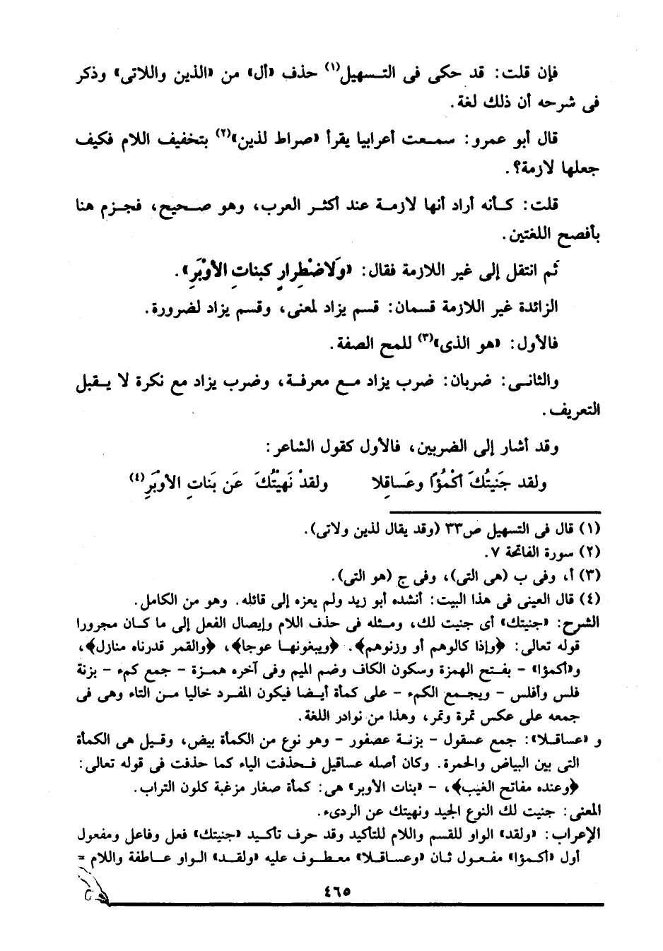 4 قال العيني في هذا البيت: أنشده أبو زيد ولم يعزه إلى قائله. وهو من الكامل.