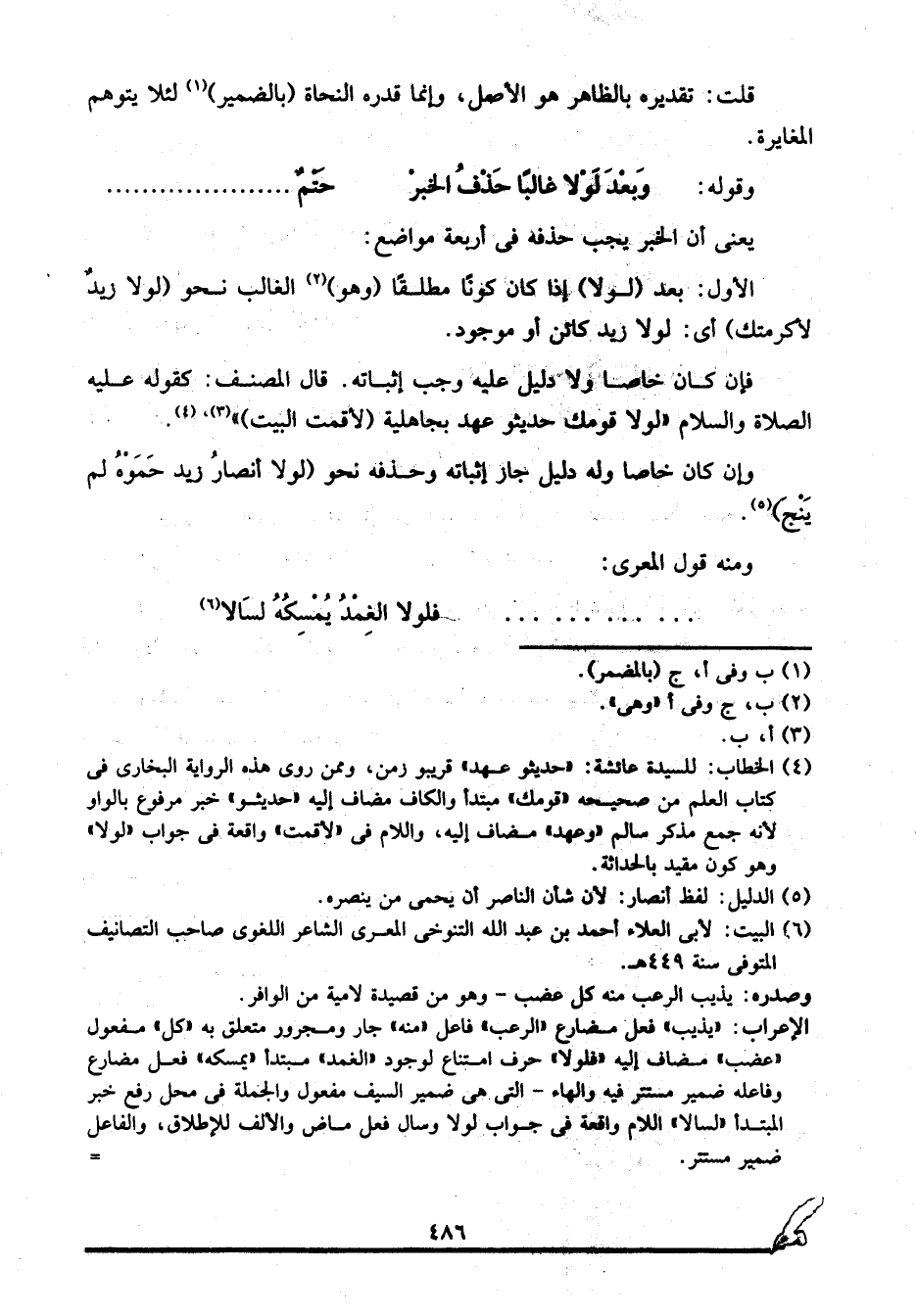 وبعد لولا غالبا حذف الخبر ... حتم............................