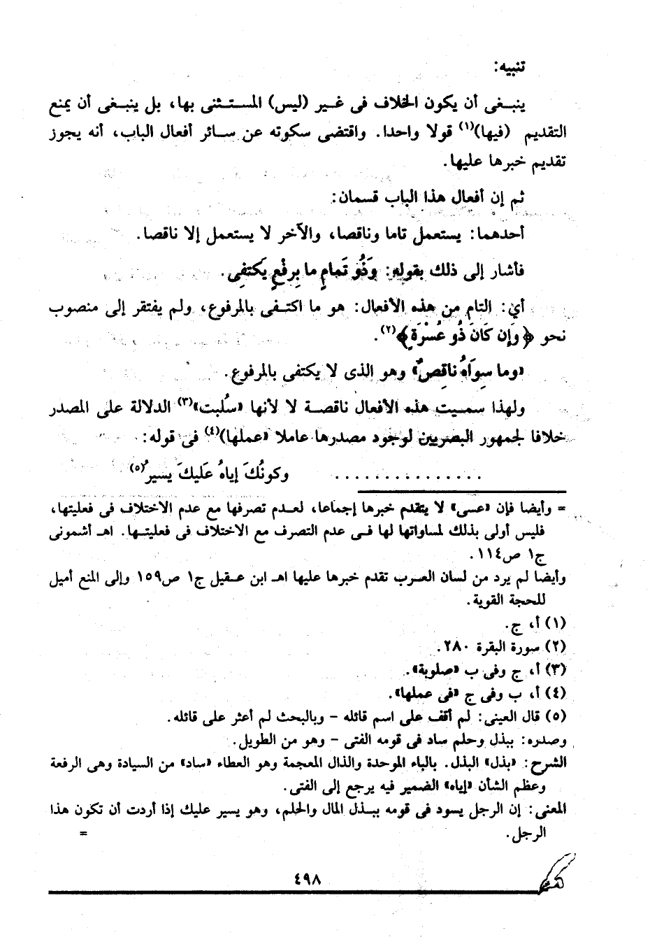 ولهذا سميت هذه الأفعال ناقصة لا لأنها "سلبت"3 الدلالة على المصدر خلافا لجمهور البصريين لوجود مصدرها عاملا "عملها"4 في قوله: