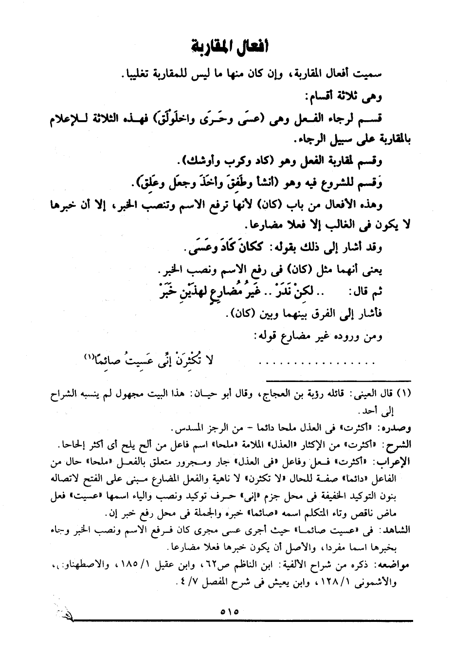 وقسم للشروع فيه وهو "أنشأ وطفق وأخذ وجعل وعلق".