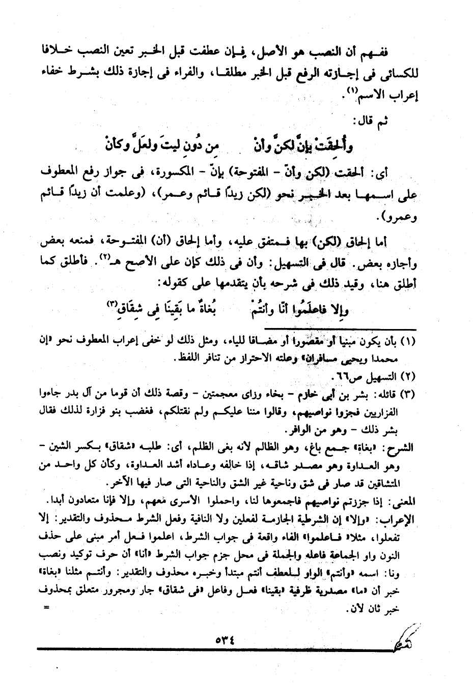 الشاهد: في "أنَّا وأنتم بغاة" حيث ورد فيه ما ظاهره أنه عطف بالرفع قوله "وأنتم" على محل اسم "أن" الذي هو "نا" قبل أن يأتي بخبر "أن" الذي هو بغاة.