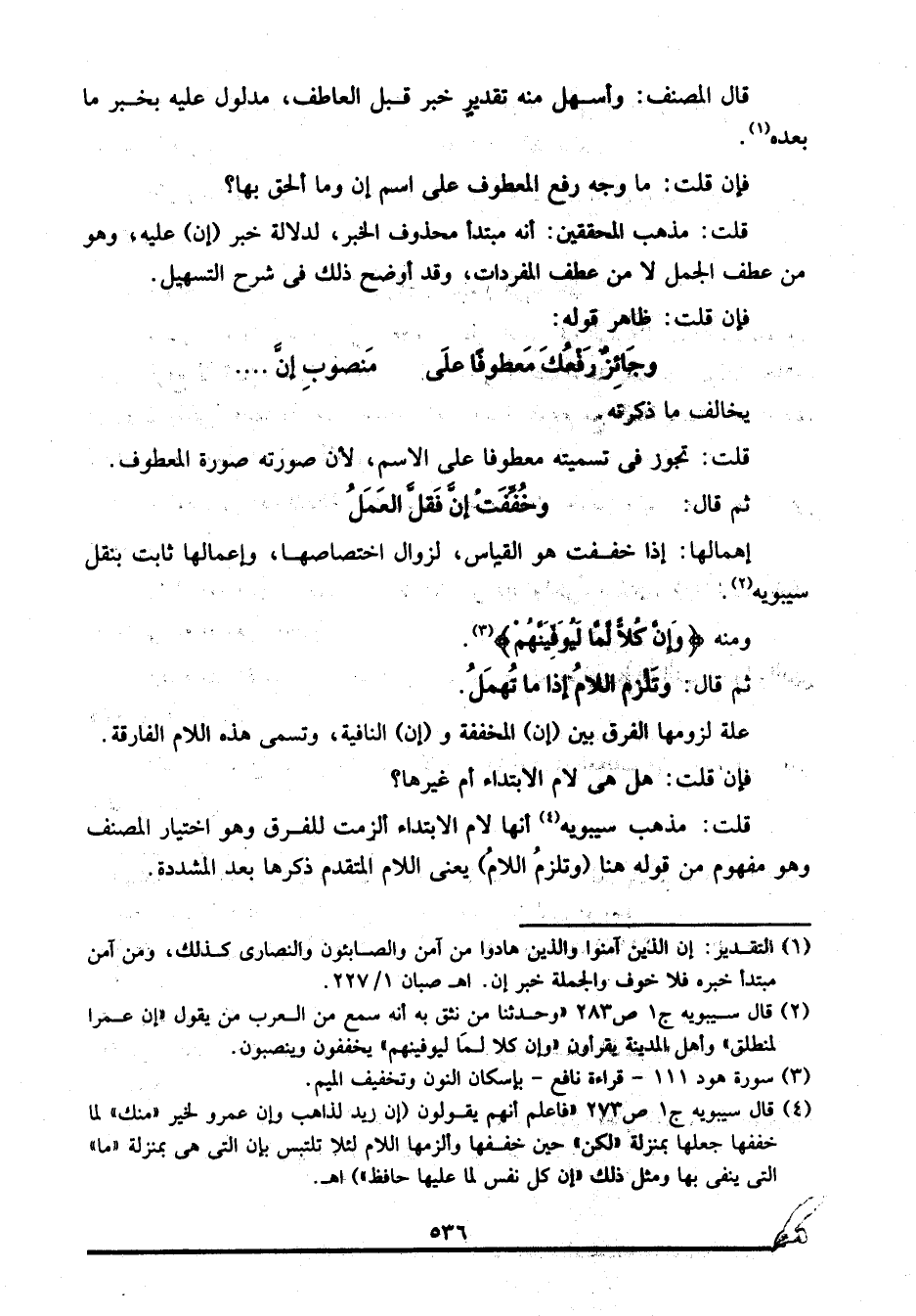 2 قال سيبويه ج1 ص283: "وحدثنا من نثق به أنه سمع من العرب من يقول: "إن عمرا لمنطلق", وأهل المدينة يقرءون: "وإن كلا لَمَا ليوفينهم", يخففون وينصبون.