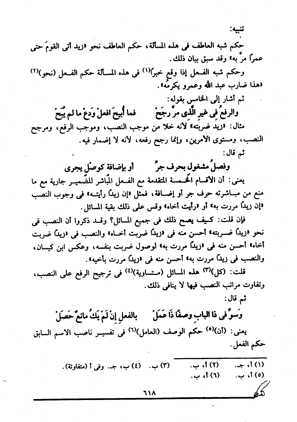 قلت: "كل"3 هذه المسائل "متساوية"4 في ترجيح الرفع على النصب، وتفاوت مراتب النصب فيها لا ينافي ذلك.