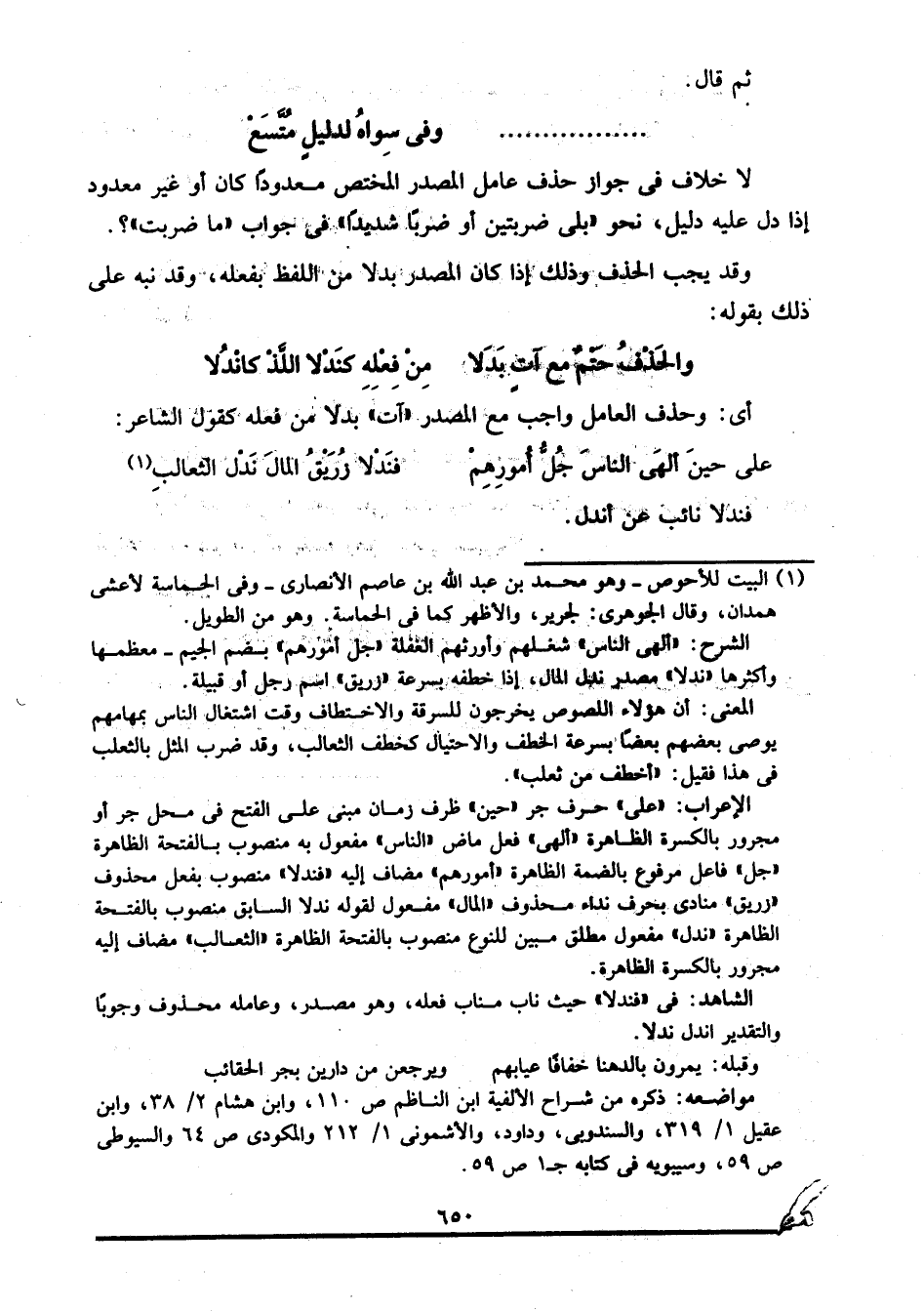 الشاهد: في "فندلا", حيث ناب مناب فعله وهو مصدر، وعامله محذوف وجوبا والتقدير: اندل ندلًا.