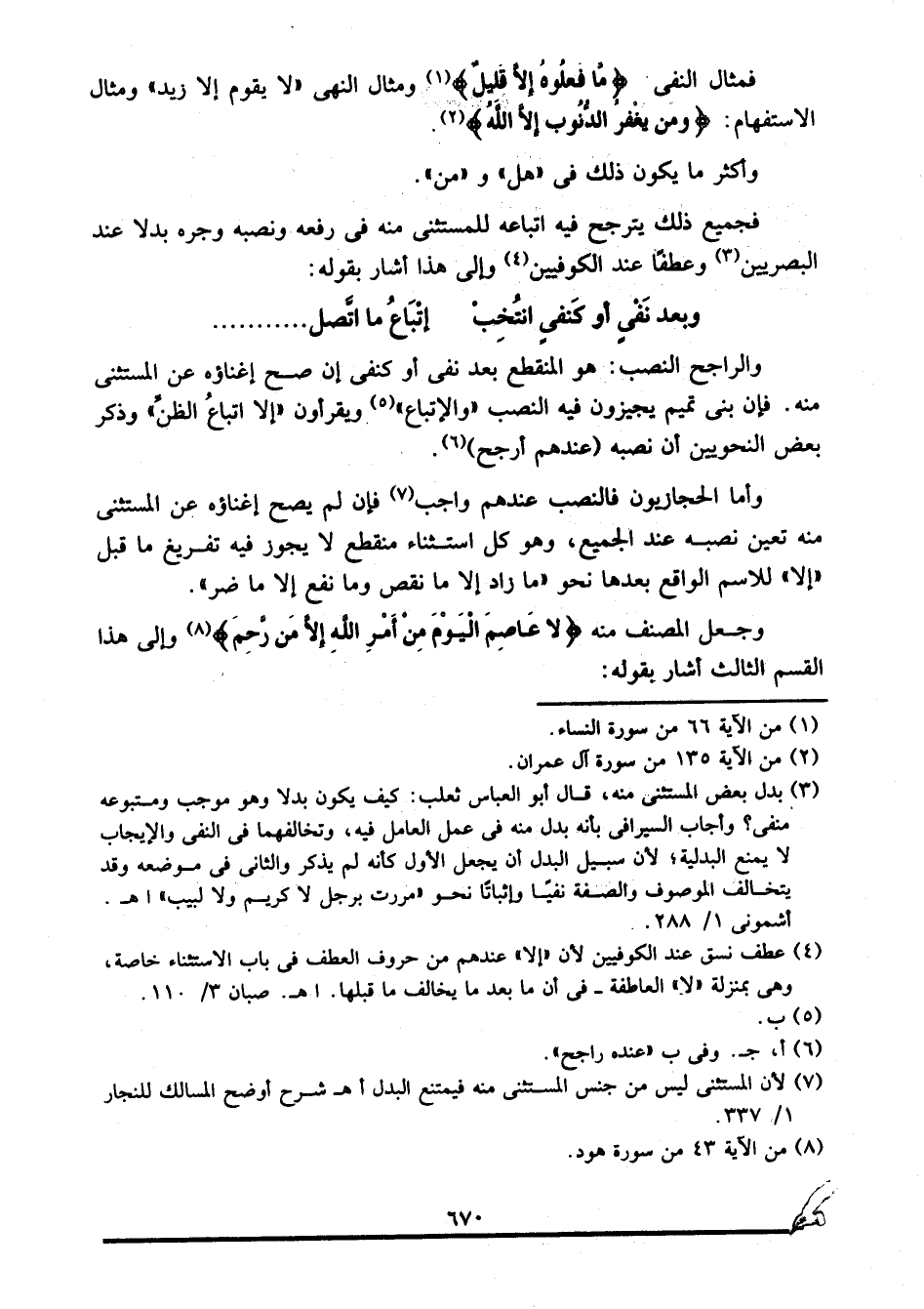 وجعل المصنف منه: {لَا عَاصِمَ الْيَوْمَ مِنْ أَمْرِ اللَّهِ إِلَّا مَنْ رَحِمَ} 8, وإلى هذا القسم الثالث أشار بقوله: