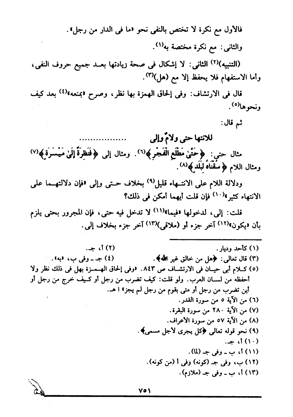ودلالة اللام على الانتهاء قليل9 بخلاف حتى وإلى, "فإن دلالتهما على الانتهاء كثير"10, فإن قلت: أيهما أمكن في ذلك؟