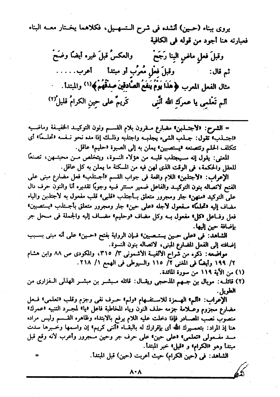 الشاهد: في "حين الكرام" حيث أعربت "حين" قبل المبتدأ. مواضعه: ذكره من شراح الألفية: الأشموني 2/ 325، والمكودي ص88، وابن هشام في المغني 2/ 115، والسيوطي في الهمع 1/ 218.