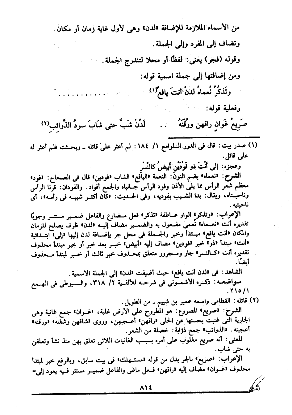 الشاهد: في "لدن أنت يافع", حيث أضيفت "لدن" إلى الجملة الاسمية.