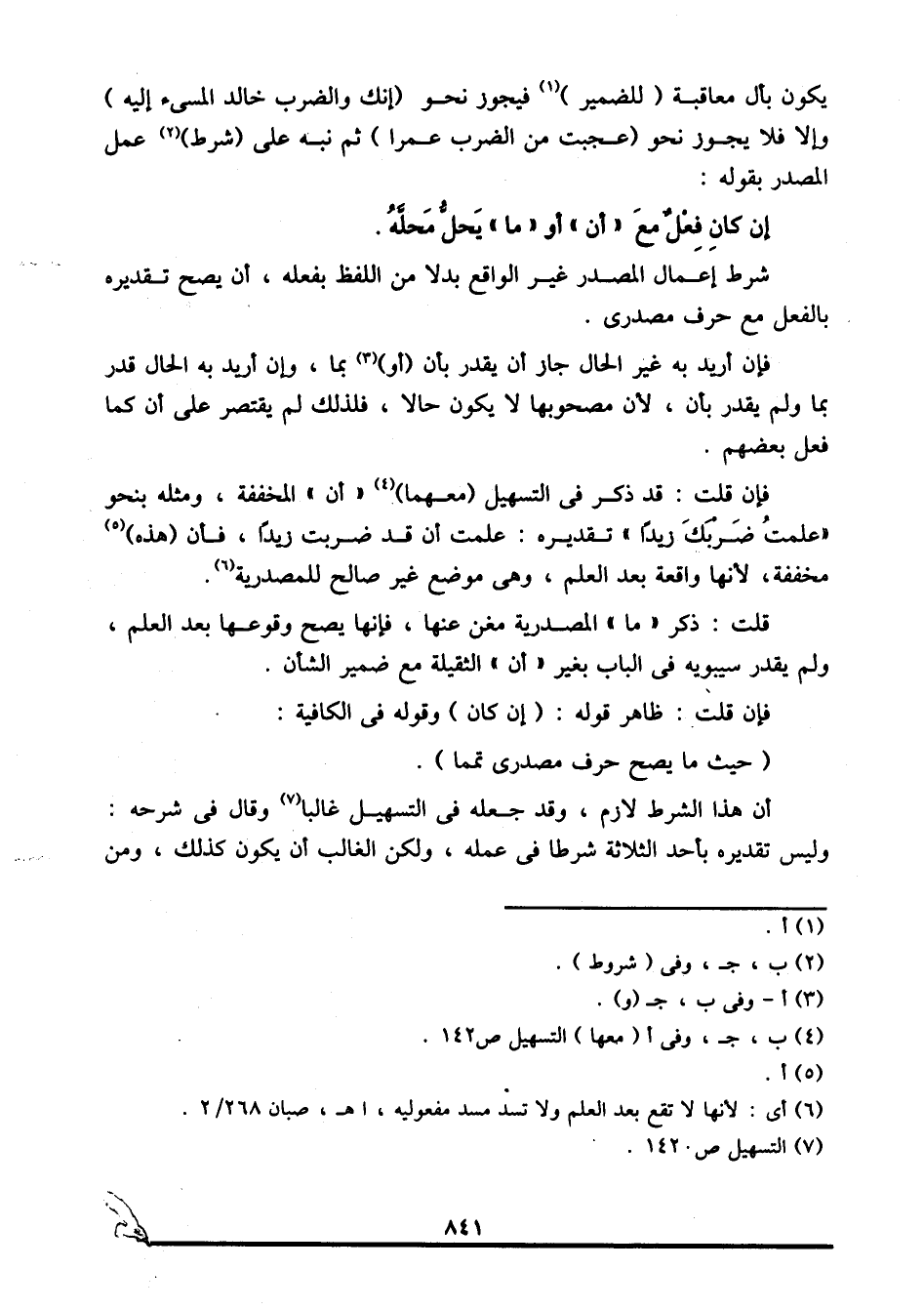 فإن أريد به غير الحال جاز أن يقدر بأن "أو"3 بما، وإن أريد به الحال قدر بما ولم يقدر بأن؛ لأن مصحوبها لا يكون حالا؛ فلذلك لم يقتصر على أن كما فعل بعضهم.